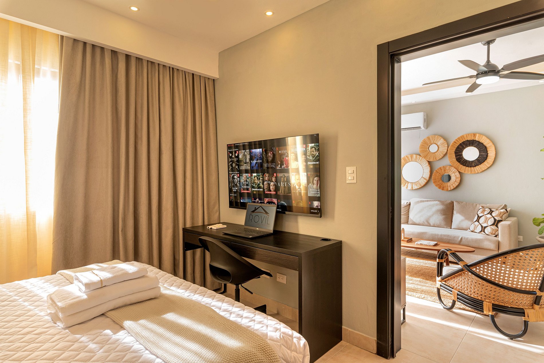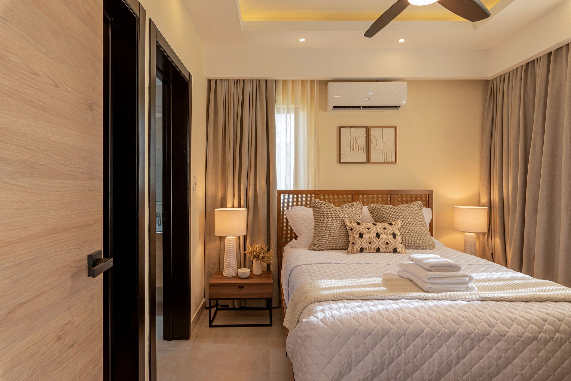 Experimenta el lujo caribeño en nuestro apartamento de 1 habitación en Punta Cana. Con una decoración elegante y moderna, en el residencial puedes disfrutar de una piscina refrescante, gimnasio y un espacio de coworking inspirador. Ideal para familias, también tiene área de juegos para niños. A solo 7 minutos de la playa con acceso y estacionamiento privado y del animado Downtown Punta Cana con una alta variedad de restaurantes y lugares de entretenimiento. A solo 15 minutos del aeropuerto.