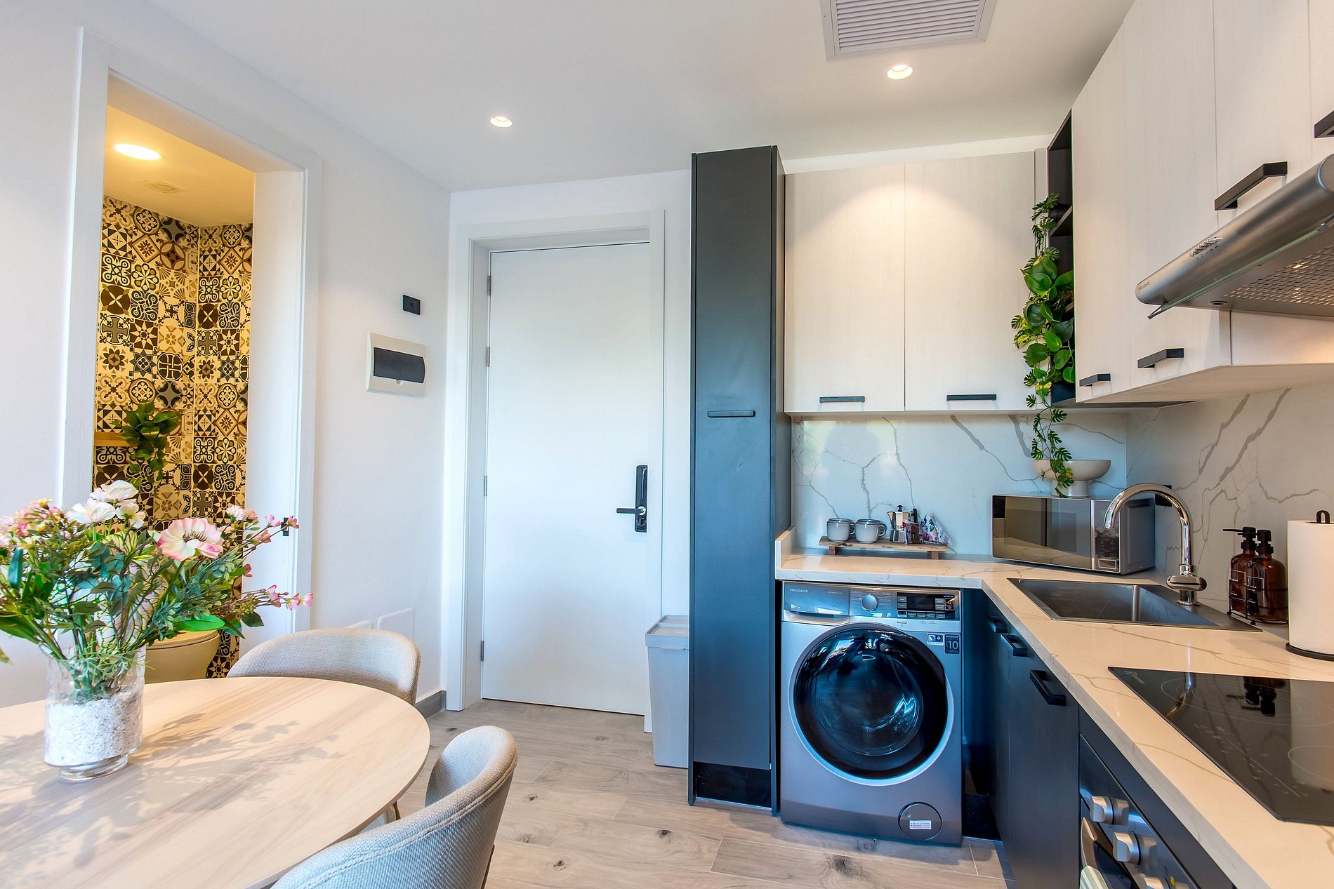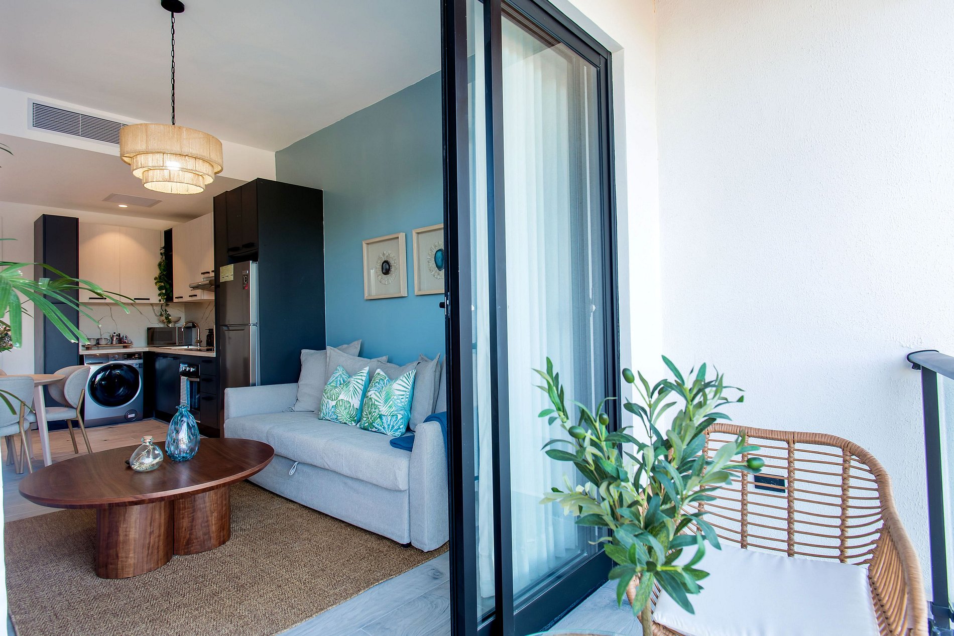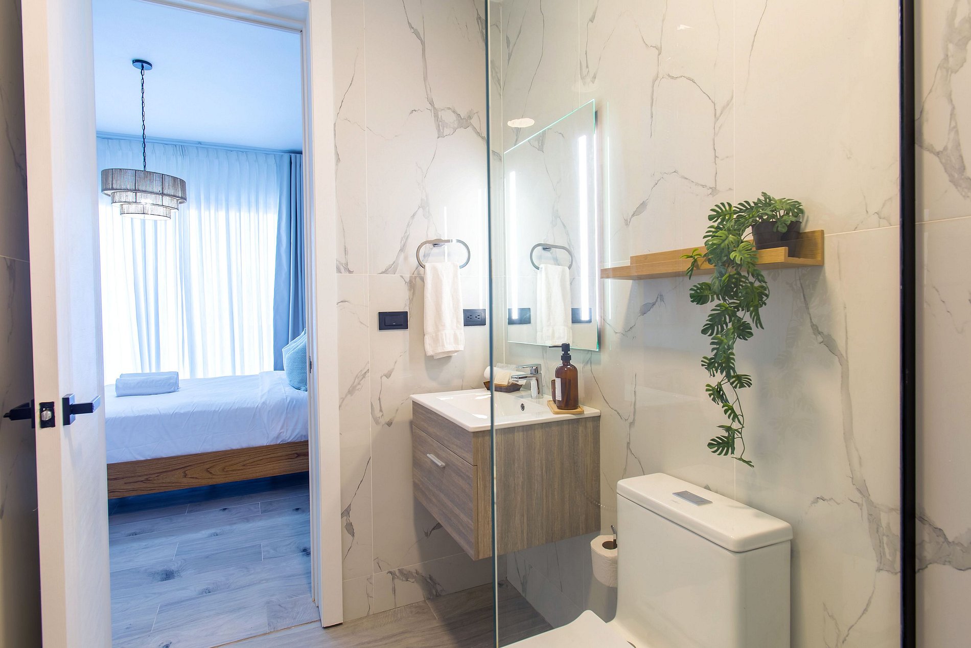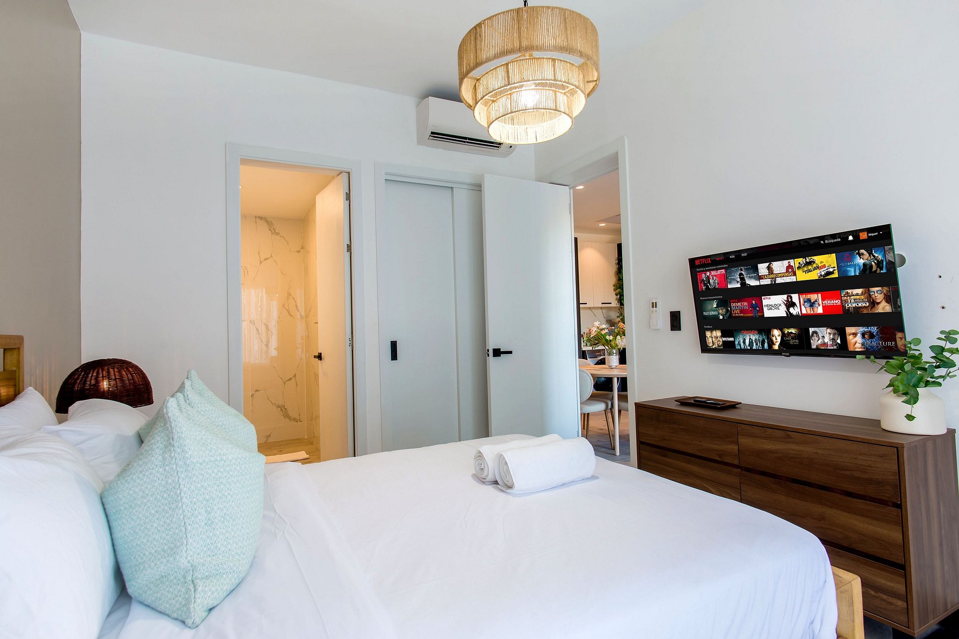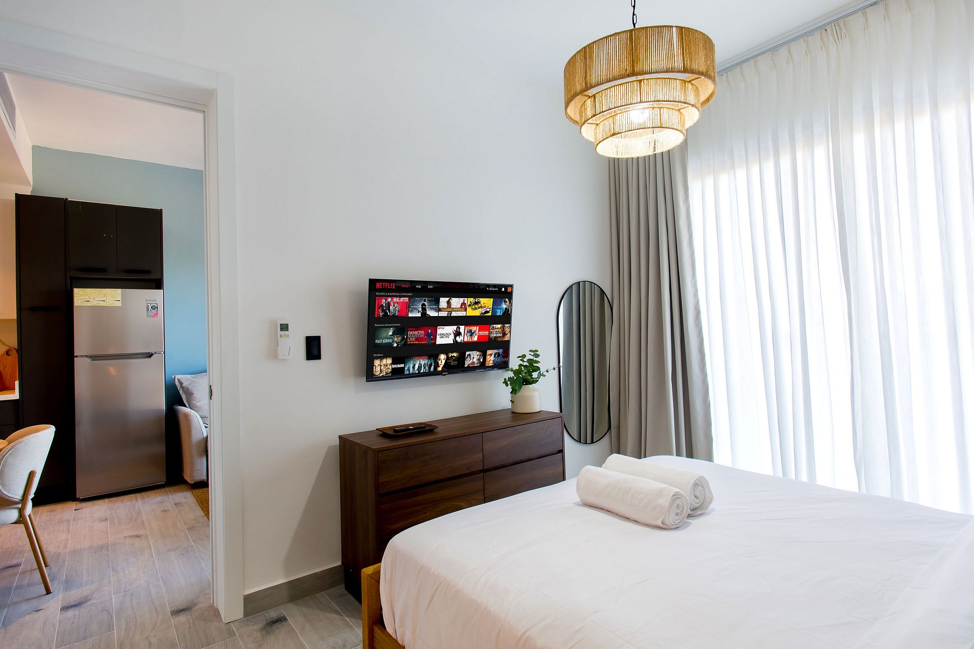 Este hermoso apartamento se encuentra en el segundo piso, con acceso mediante elevador para mayor comodidad. En la sala, podrás relajarte en un cómodo sofá cama y disfrutar de una televisión smart, perfecta para entretenerte. Además, cuenta con un medio baño para mayor conveniencia. La habitación tiene su propio baño, una cama Queen size para un descanso reparador y otra televisión smart para tu entretenimiento. Un espacio ideal para una estadía placentera y confortable.