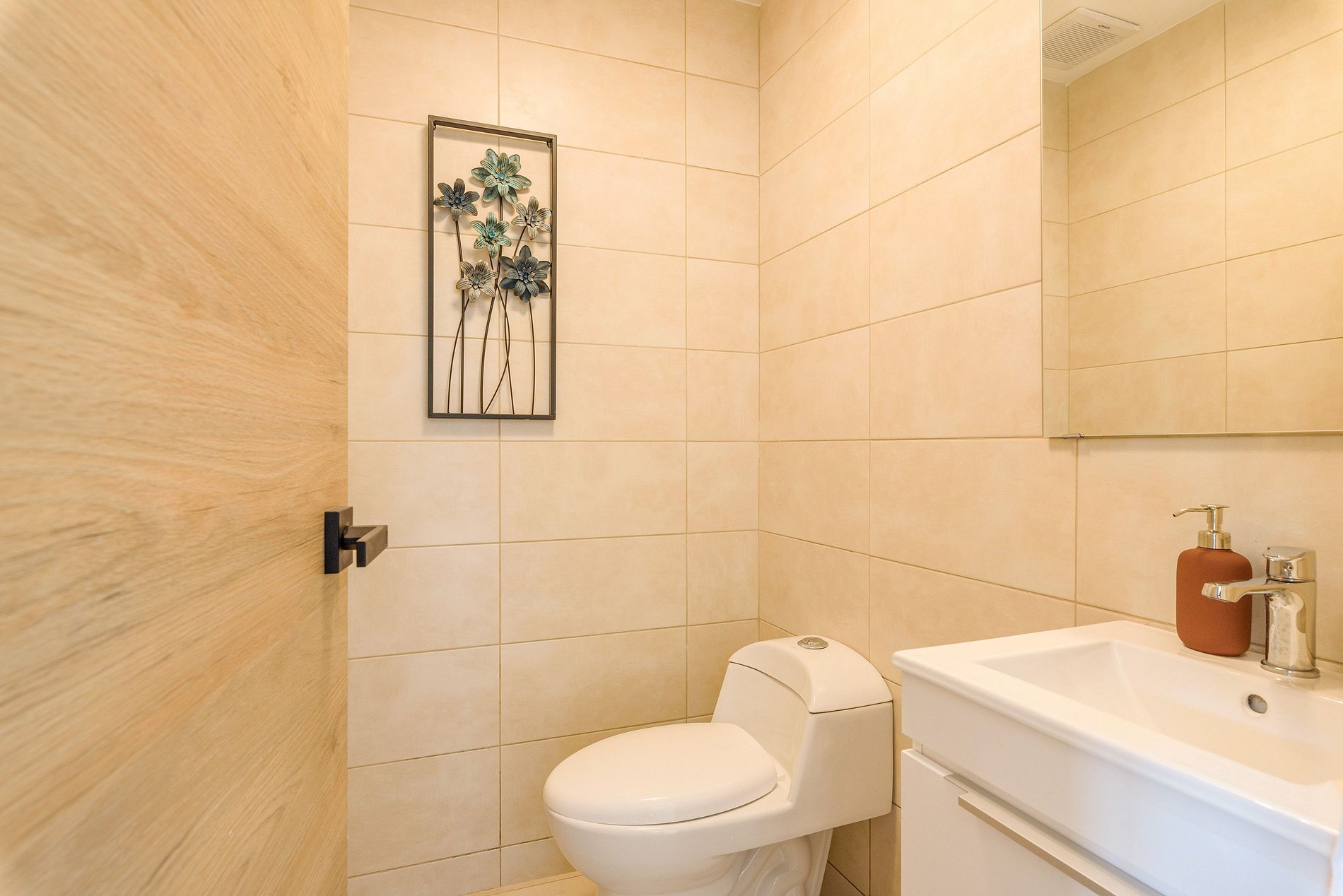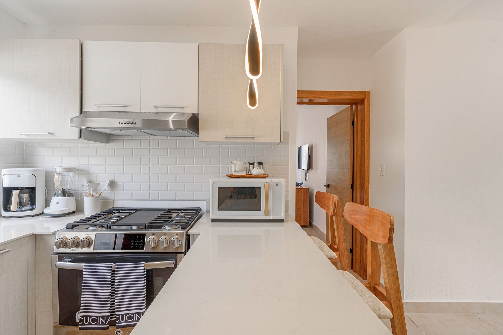 La sala de estar se convierte en tu santuario personal. Un medio baño conveniente, otra televisión y una cocina completamente equipada te esperan. Imagina disfrutar de un momento de tranquilidad o compartir risas y delicias culinarias en este espacio único.