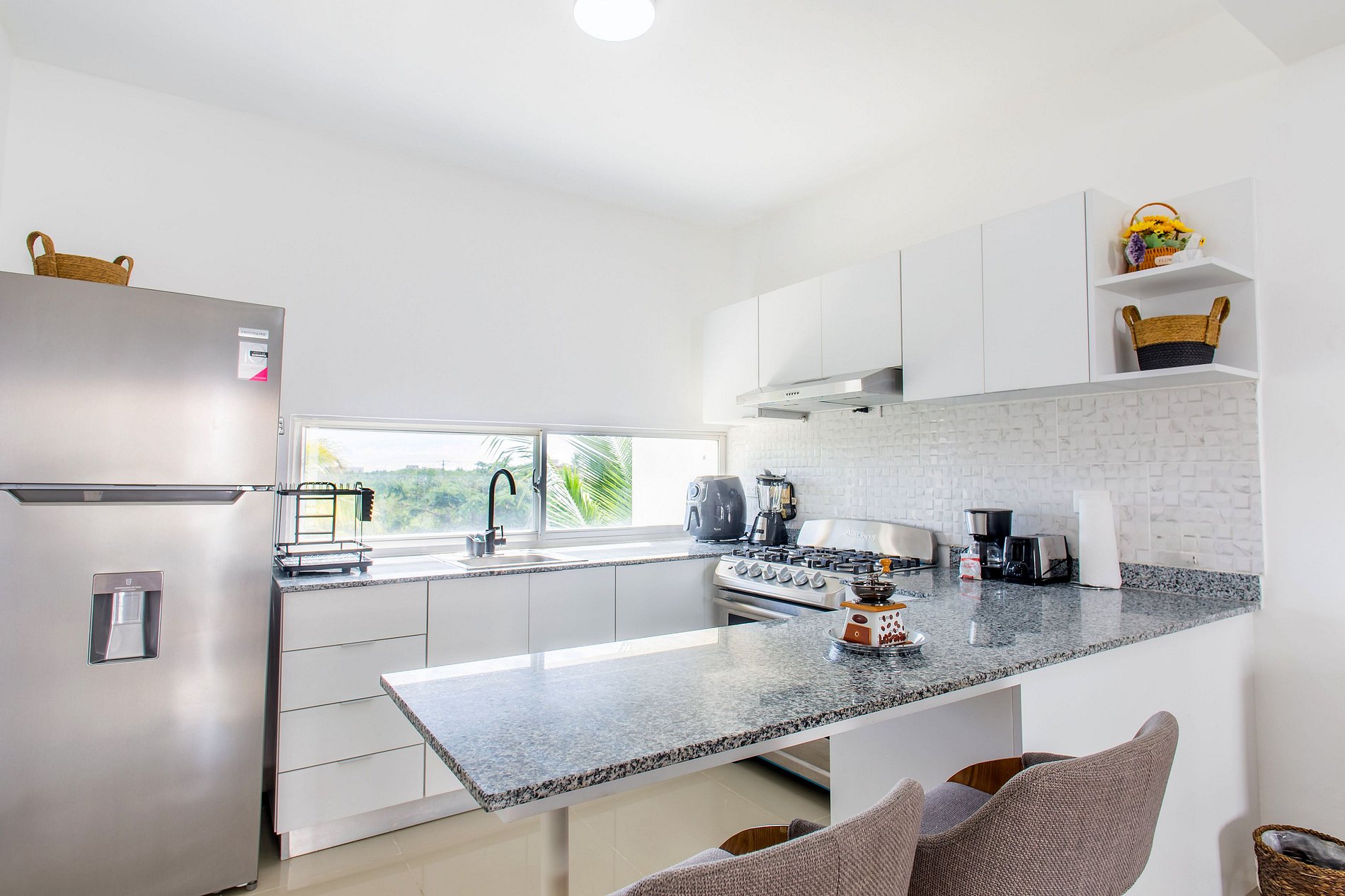 Este apartamento te espera a solo 7 minutos del aeropuerto de Punta Cana, ideal para quienes buscan conveniencia al llegar o salir del destino. A tan solo 3 minutos en coche, encontrarás el supermercado UNIDOS y una maravillosa selección de restaurantes para disfrutar de la exquisita gastronomía local.
