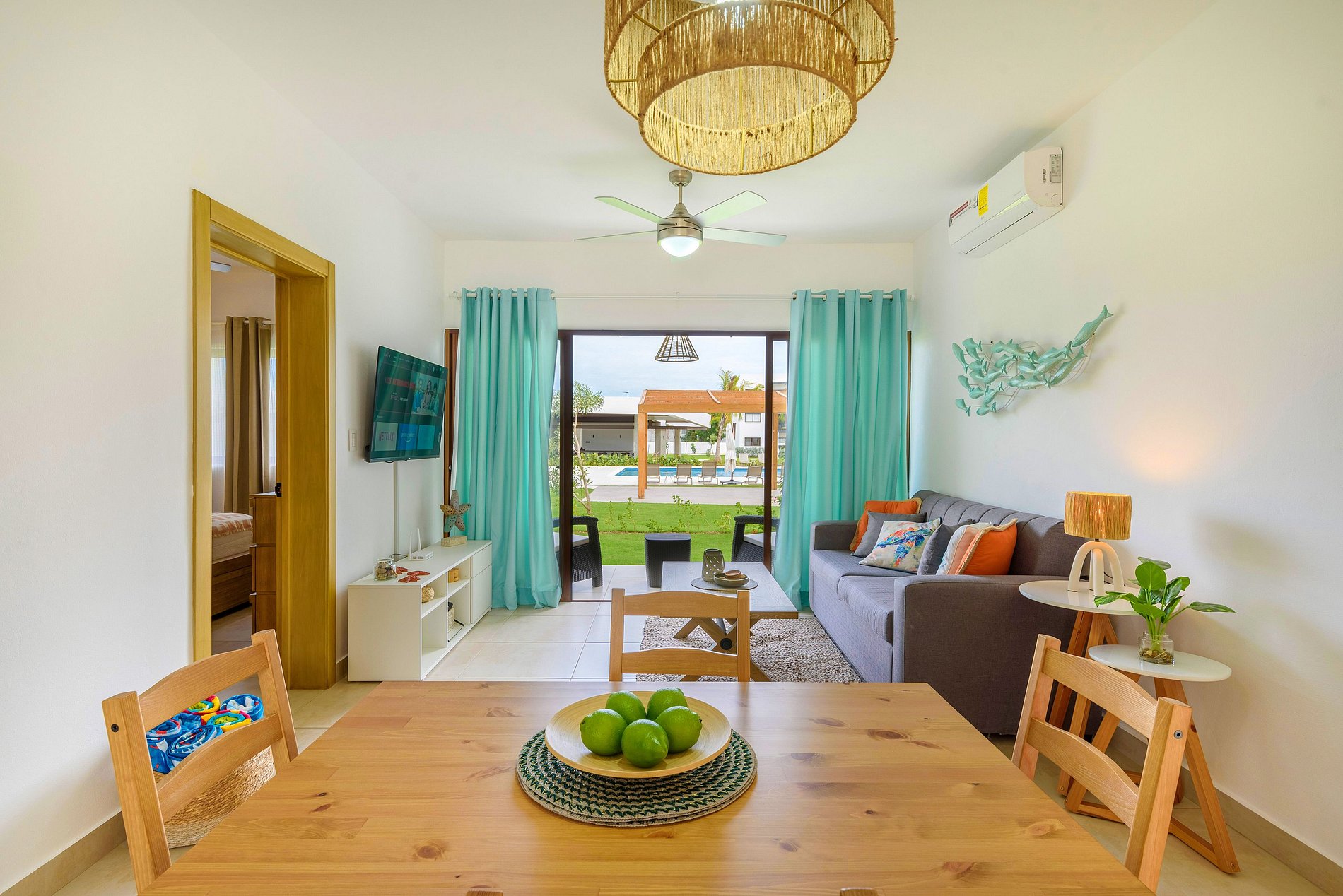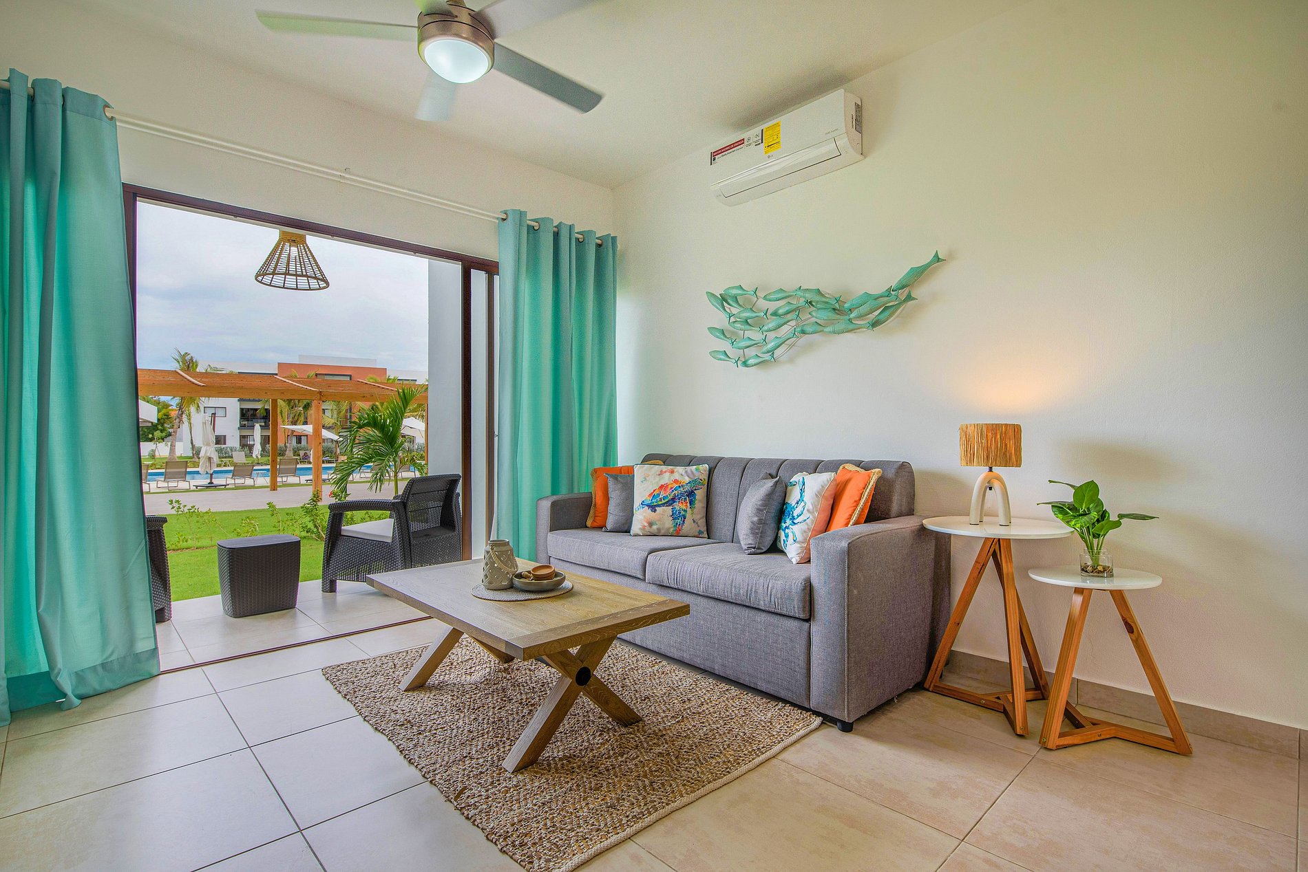 Experimenta la comodidad en este encantador apartamento de dos habitaciones en Punta Cana. Ubicado estratégicamente en el primer piso sin escaleras, frente a una piscina impresionante, este espacio te brinda la oportunidad de desconectarte y rejuvenecer. A tan solo 15 minutos del aeropuerto y a un corto trayecto de 7 minutos en auto de la playa. En un residencial con seguridad las 24 horas. Además cuenta con gimnasio y un área de juegos para niños.