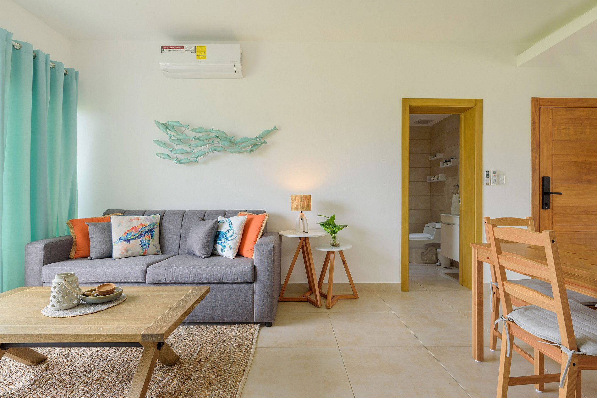 Este apartamento se encuentra ubicado a solo 7 minutos del Downtown Punta Cana, donde encontrarás una amplia variedad de restaurantes exquisitos, vibrantes bares, acogedores supermercados, centros comerciales, bancos, parques acuáticos, discotecas y la renombrada experiencia de Coco Bongo.