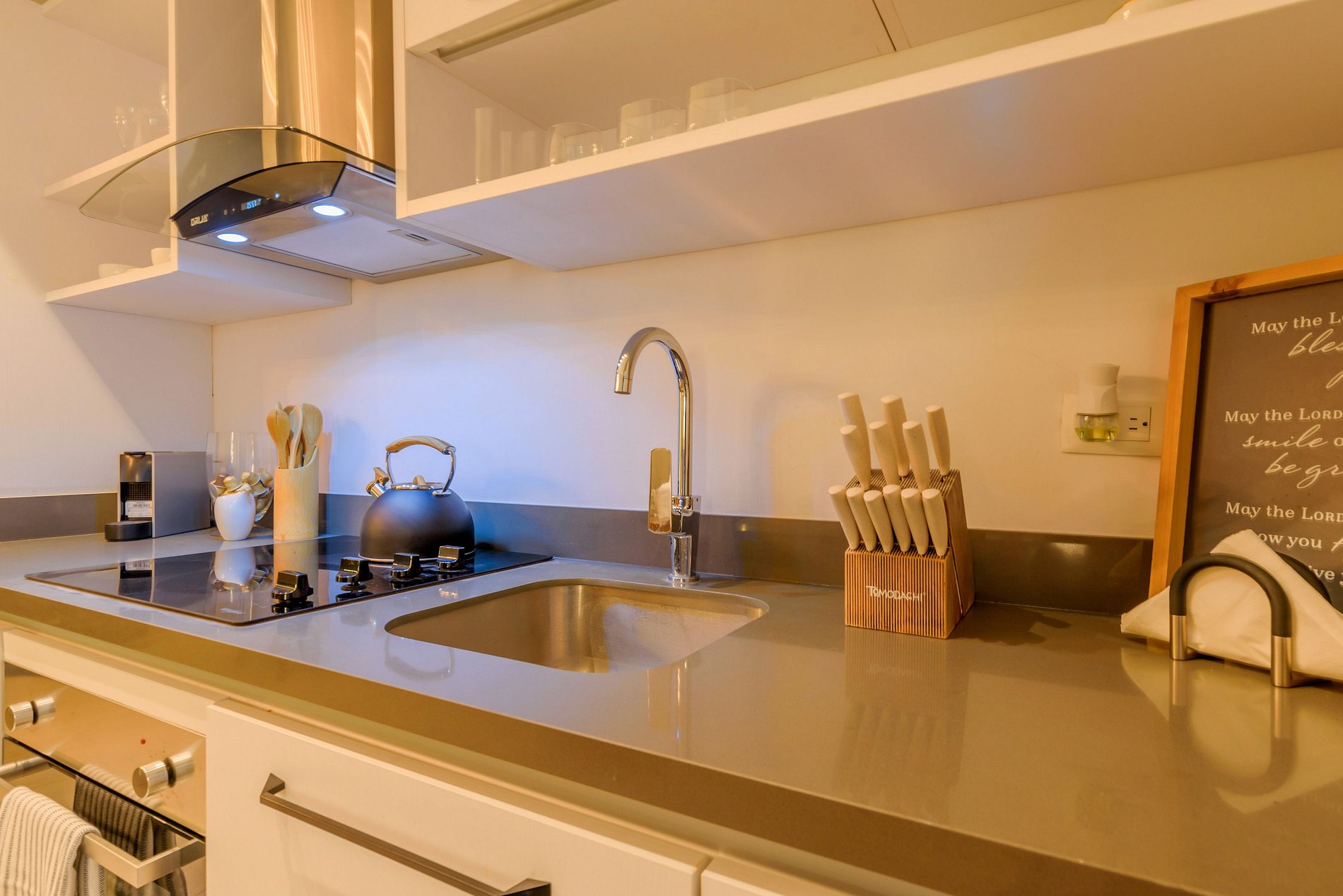 El apartamento cuenta con una sala cómoda con sofá y televisión Smart, un comedor integrado y una cocina totalmente equipada, además de un medio baño que aporta mayor funcionalidad. Cada espacio ha sido diseñado para ofrecer confort tanto en estancias cortas como prolongadas.