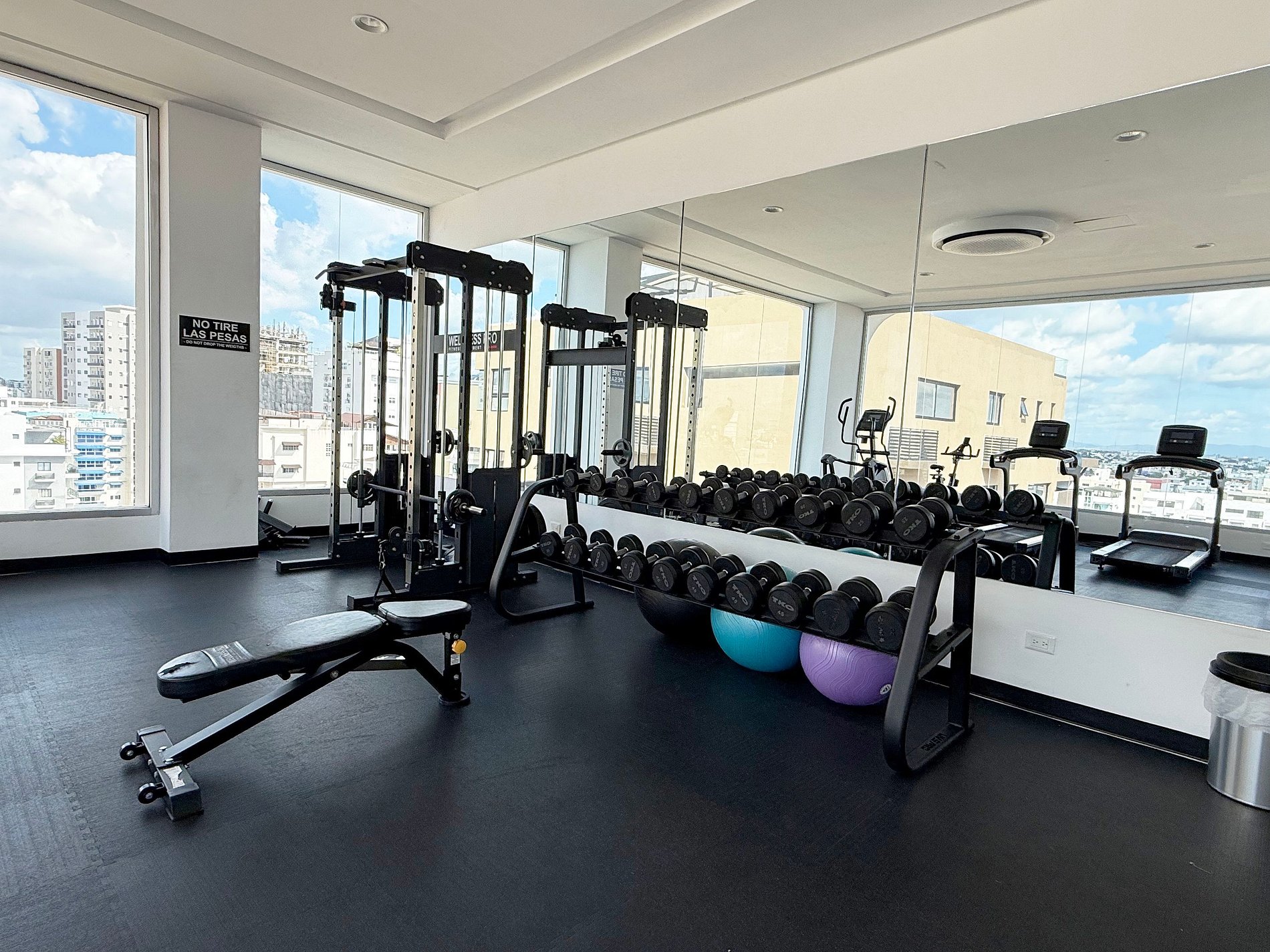 Vive Santo Domingo desde un lugar privilegiado en Bella Vista. Este exclusivo apartamento de una habitación combina diseño moderno y confort en una ubicación estratégica, cerca de restaurantes, centros comerciales, bares y supermercados. Eleva tu experiencia en la piscina infinity del piso 12 con vistas espectaculares al mar y a la ciudad, ideal para cerrar el día. Mantén tu rutina en el gimnasio del edificio y disfruta un espacio pensado para descansar, trabajar o disfritar la ciudad con estilo