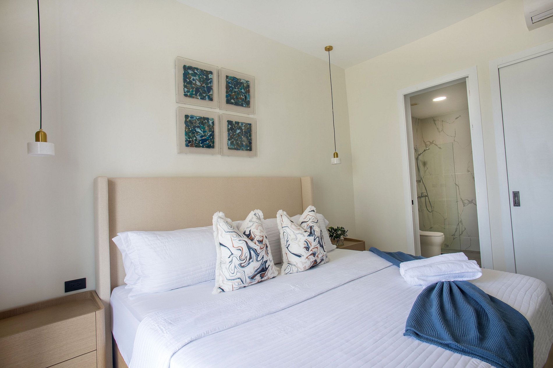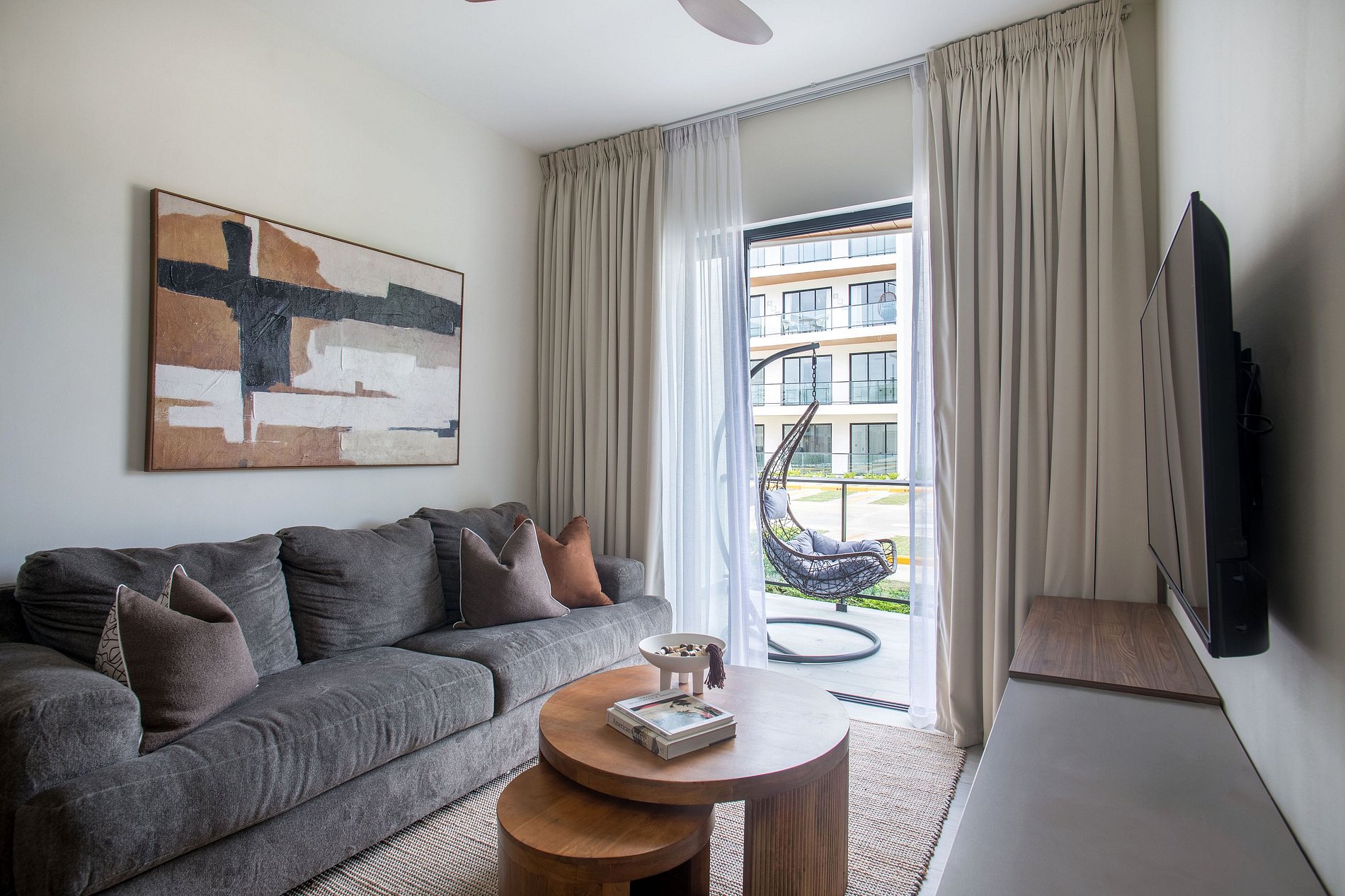 Este apartamento de 1 habitación está diseñado para el descanso y la comodidad. Disfruta de piscinas, gimnasio, una impactante playa artificial y acceso a un campo de golf, todo dentro de un entorno moderno, seguro y cuidadosamente planificado. A pocos pasos caminando encontrarás el supermercado Sirena Market, además de restaurantes y farmacias, para que tengas todo lo que necesitas sin desplazarte.