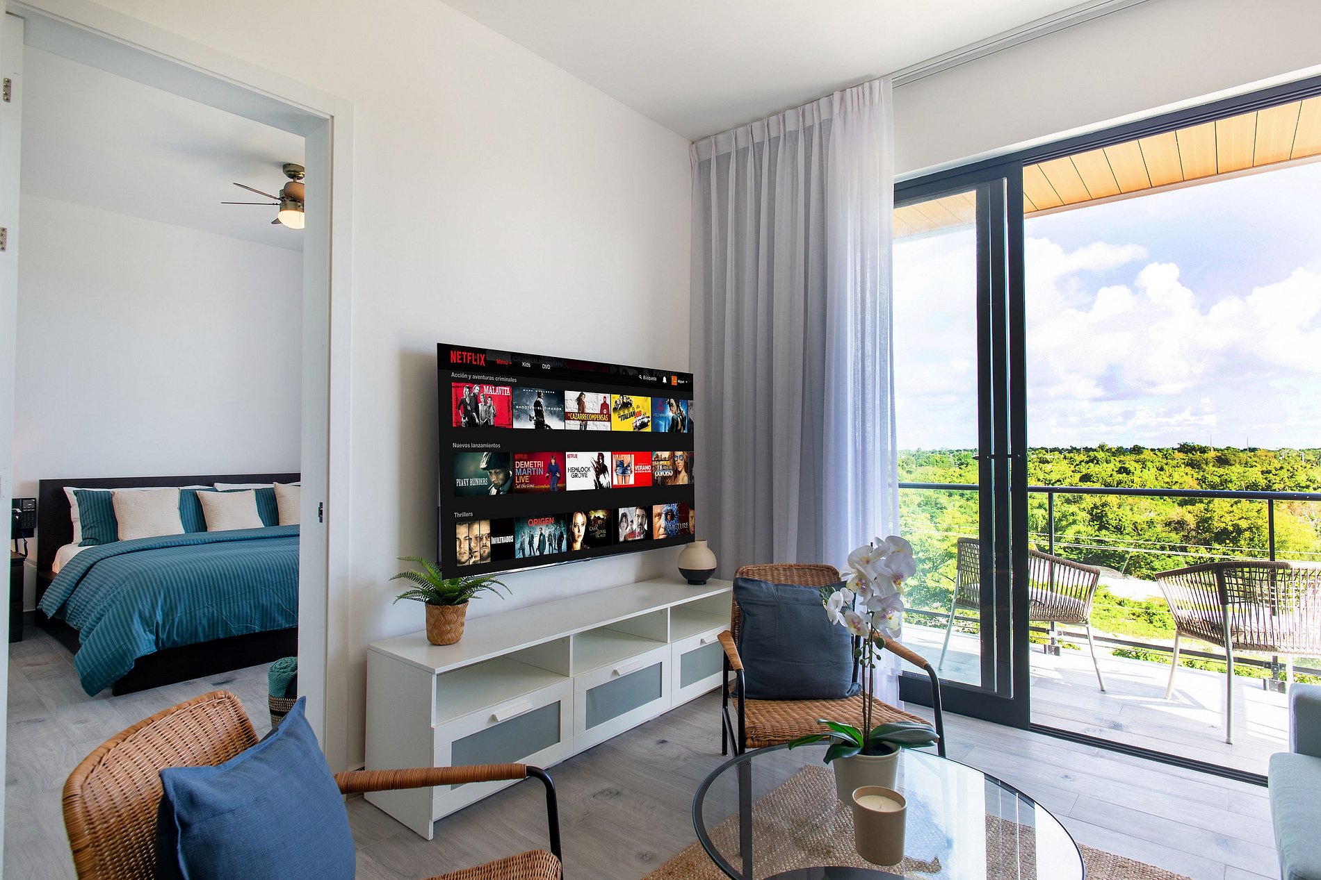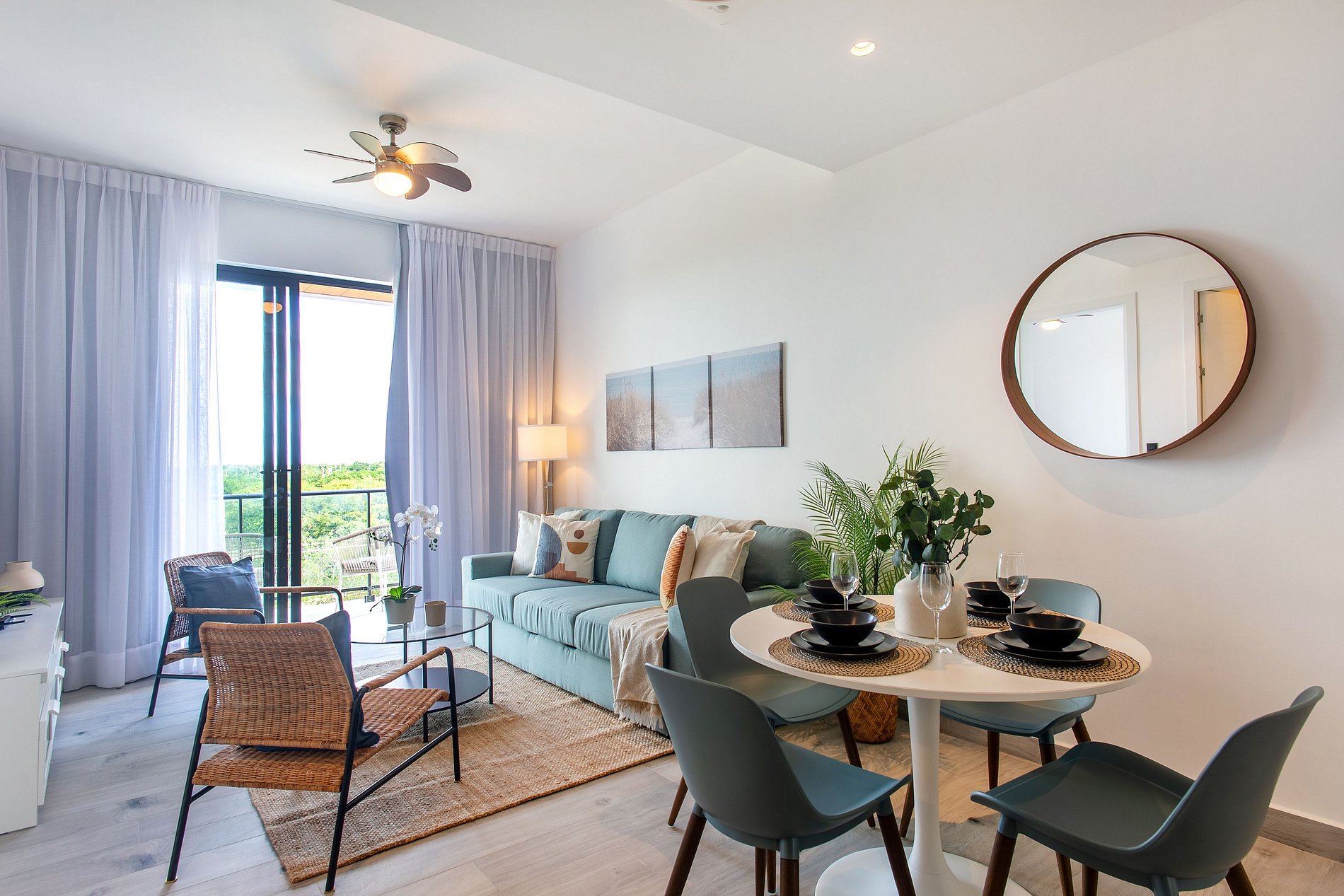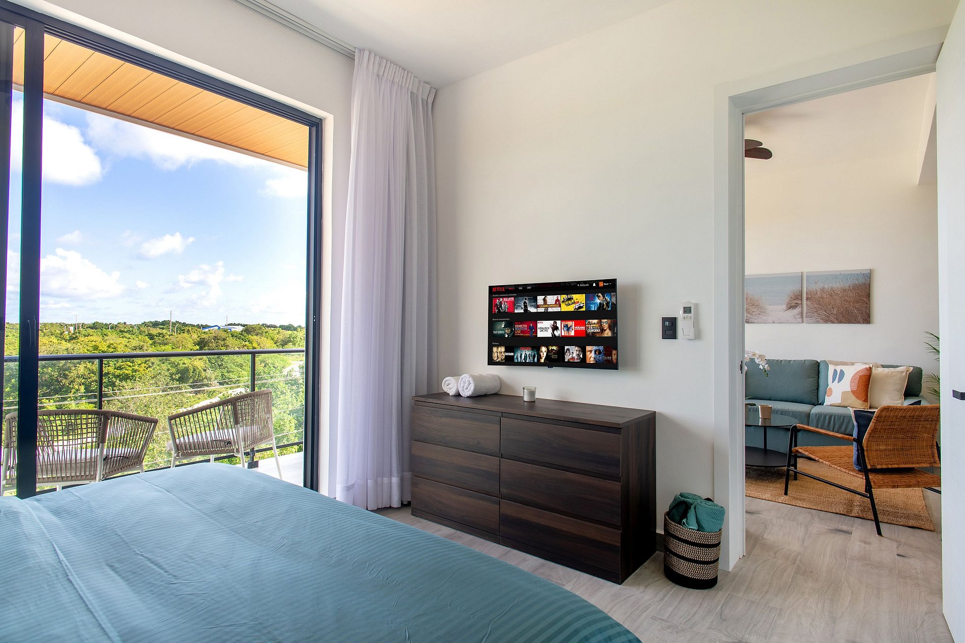 Este apartamento ha sido diseñado para brindarte confort y descanso desde el primer momento: una sala acogedora con sofá cama y Smart TV para relajarte con tu contenido favorito, comedor funcional, medio baño y una cocina completamente equipada que invita a sentirte como en casa. La habitación te envuelve en un ambiente de total tranquilidad, con una cama King Size, baño privado y Smart TV, creando el espacio perfecto para desconectar, recargar energías y disfrutar Punta Cana a tu propio ritmo.