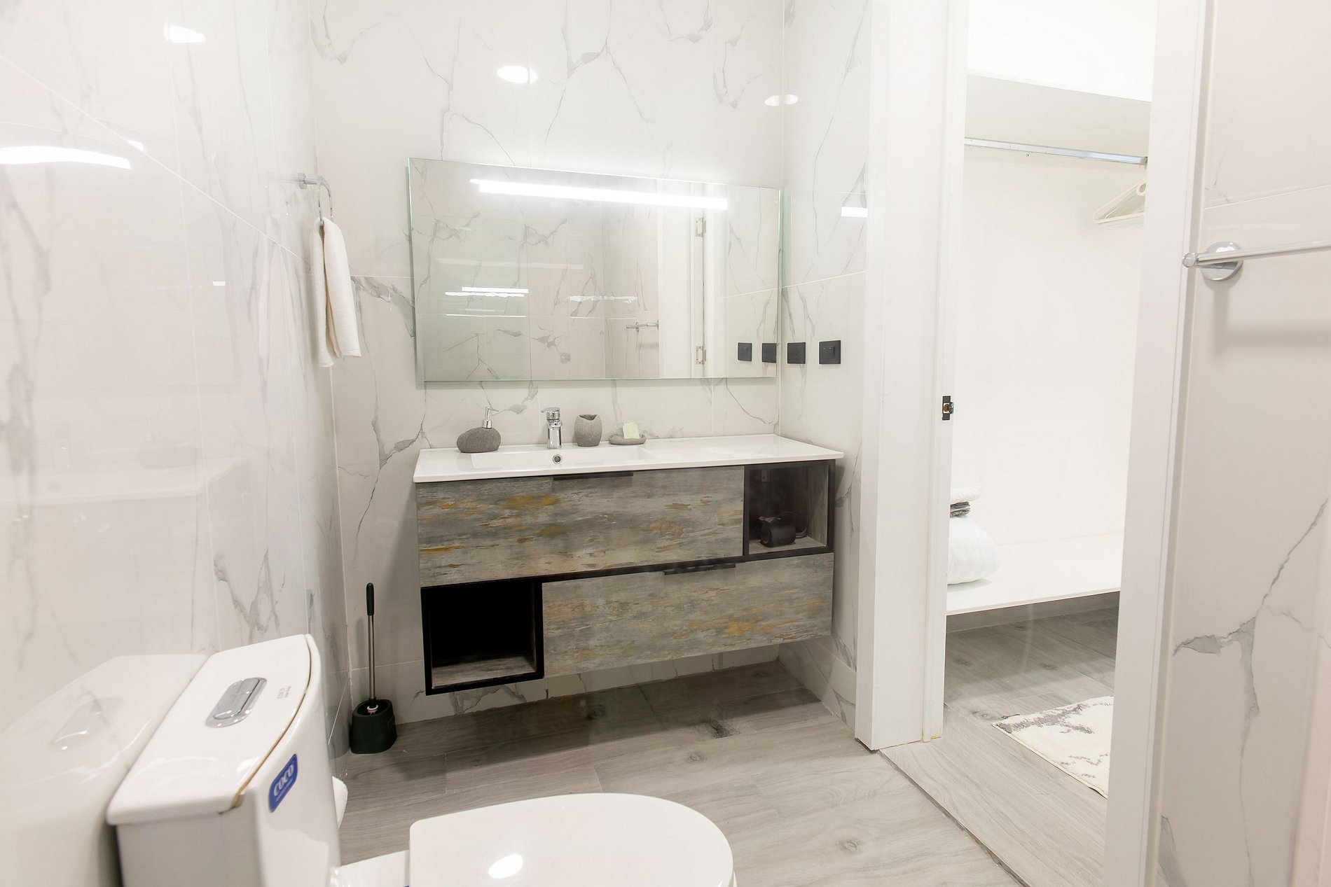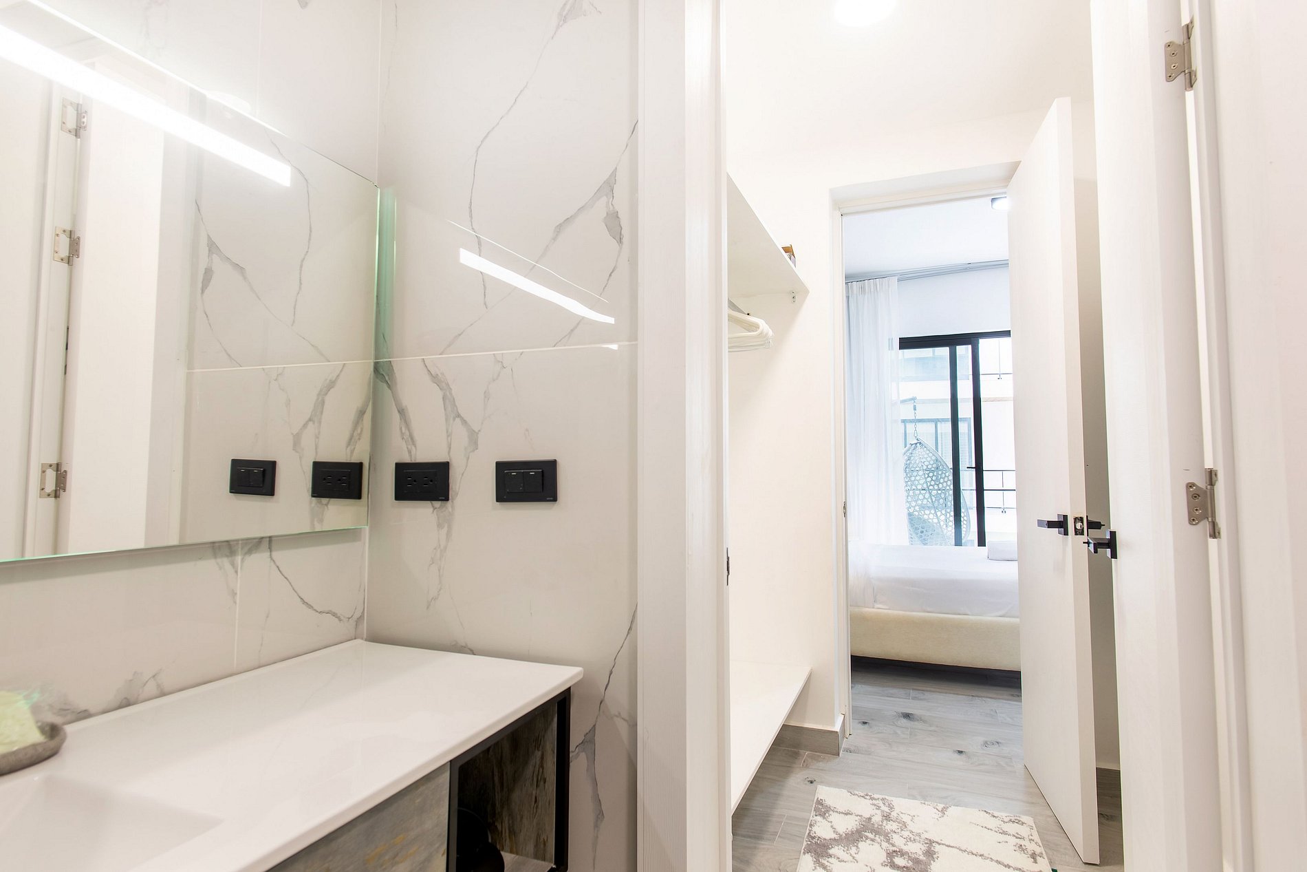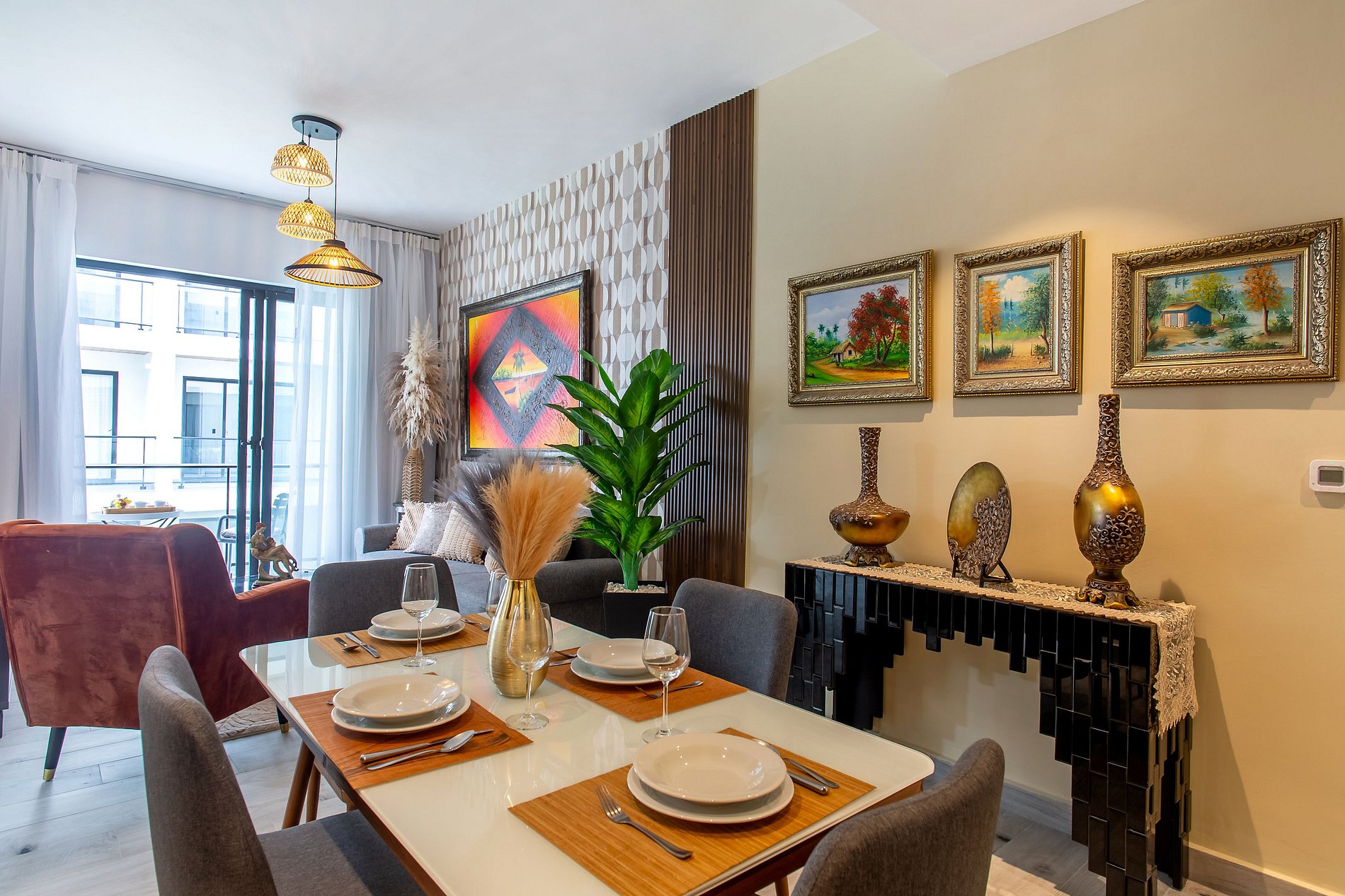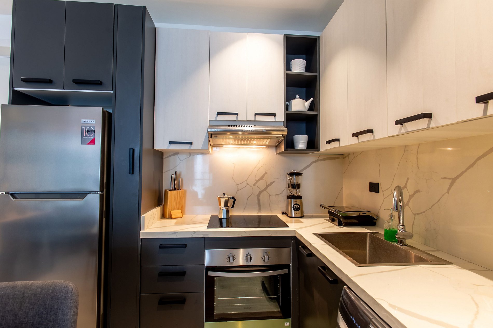 Al entrar al apartamento, te recibe una sala acogedora y bien distribuida, ideal para relajarte después de un día disfrutando Punta Cana. Aquí encontrarás un sofá cama cómodo y una Smart TV, perfectos para descansar, ver una película o compartir un momento tranquilo. También cuenta con un medio baño, un comedor para disfrutar tus comidas con calma y una cocina completamente equipada, que te brinda la libertad de preparar desde un desayuno ligero hasta una cena especial. Desde el balcón con vista al jardín, podrás disfrutar de un ambiente sereno que invita a desconectar y respirar el aire tropical.