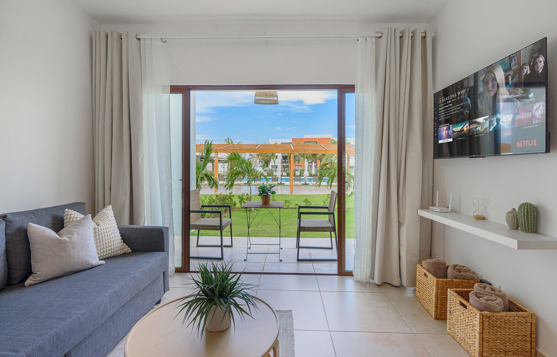 Descubre tu oasis perfecto en nuestro encantador apartamento ubicado en el primer piso, justo frente a una refrescante piscina. A solo 7 minutos en coche de la hermosa playa, este espacio te ofrece la comodidad y tranquilidad que buscas. Relájate sabiendo que estás a solo 15 minutos del Aeropuerto Internacional de Punta Cana y a 10 minutos del downtown Punta Cana. Disfruta del gimnasio del residencial para mantenerte en forma. Con seguridad las 24 horas y un área de juegos infantiles.