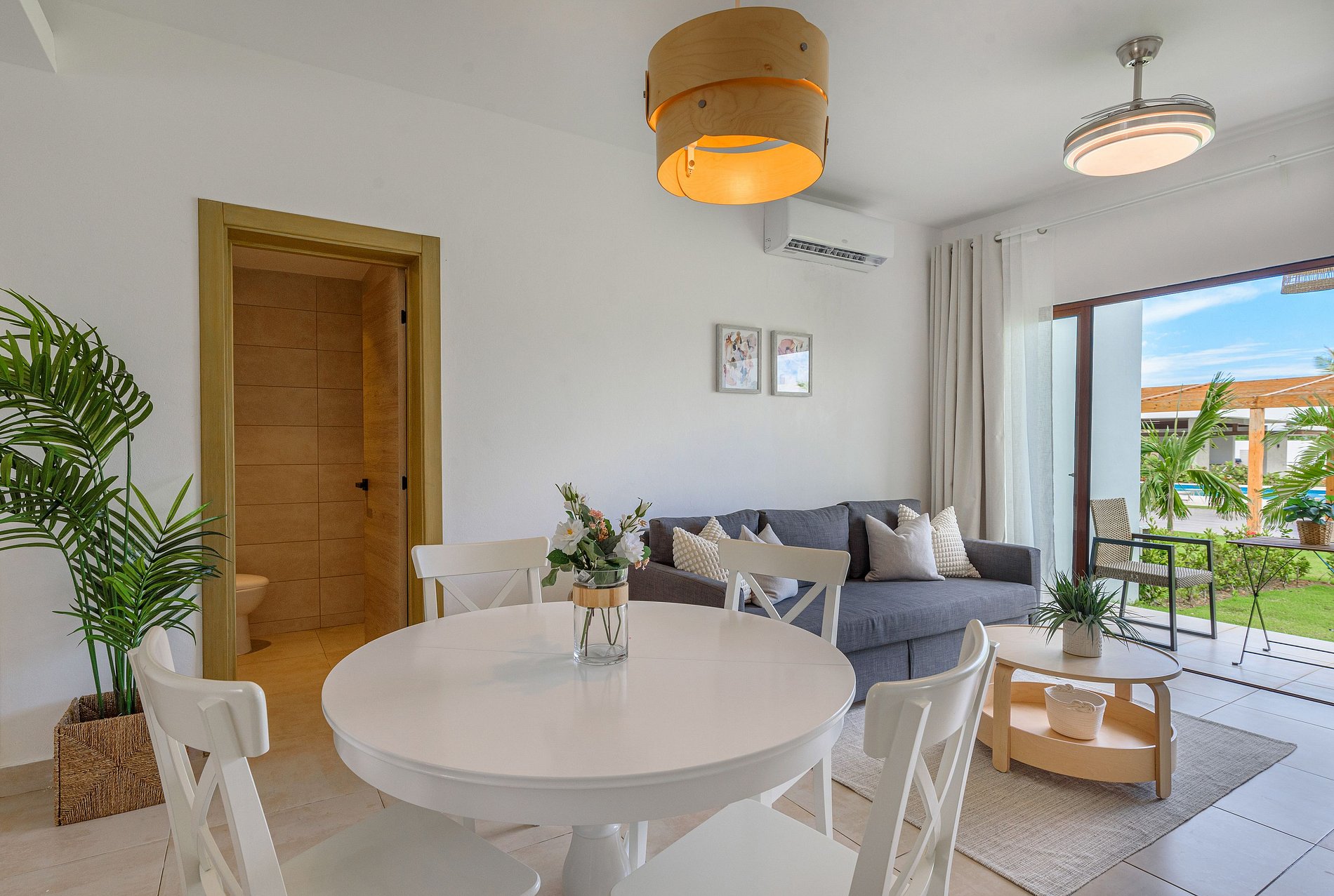 Descubre tu oasis perfecto en nuestro encantador apartamento ubicado en el primer piso, justo frente a una refrescante piscina. A solo 7 minutos en coche de la hermosa playa, este espacio te ofrece la comodidad y tranquilidad que buscas. Relájate sabiendo que estás a solo 15 minutos del Aeropuerto Internacional de Punta Cana y a 10 minutos del downtown Punta Cana. Disfruta del gimnasio del residencial para mantenerte en forma. Con seguridad las 24 horas y un área de juegos infantiles.