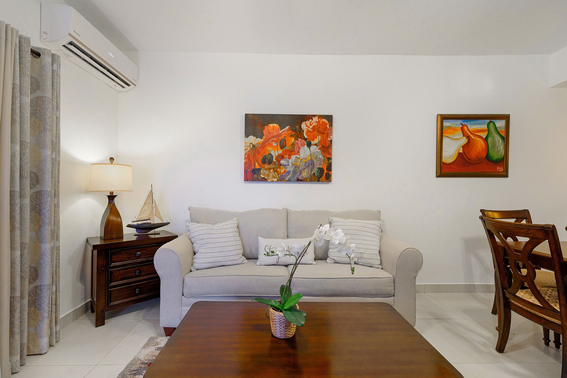 Bienvenido a nuestro acogedor apartamento en un residencial de lujo con seguridad las 24 horas. Ubicado en el primer piso, disfrutarás de fácil acceso y comodidad. Relájate en la piscina, mantente activo en el gimnasio y deja que los niños se diviertan en el área de juegos. La playa, a solo 7 minutos en coche te espera con sus aguas cristalinas y arenas blancas. El aeropuerto a solo 15 minutos y a 10 minutos del Downtown Punta Cana. Este es el lugar perfecto para unas vacaciones inolvidables.