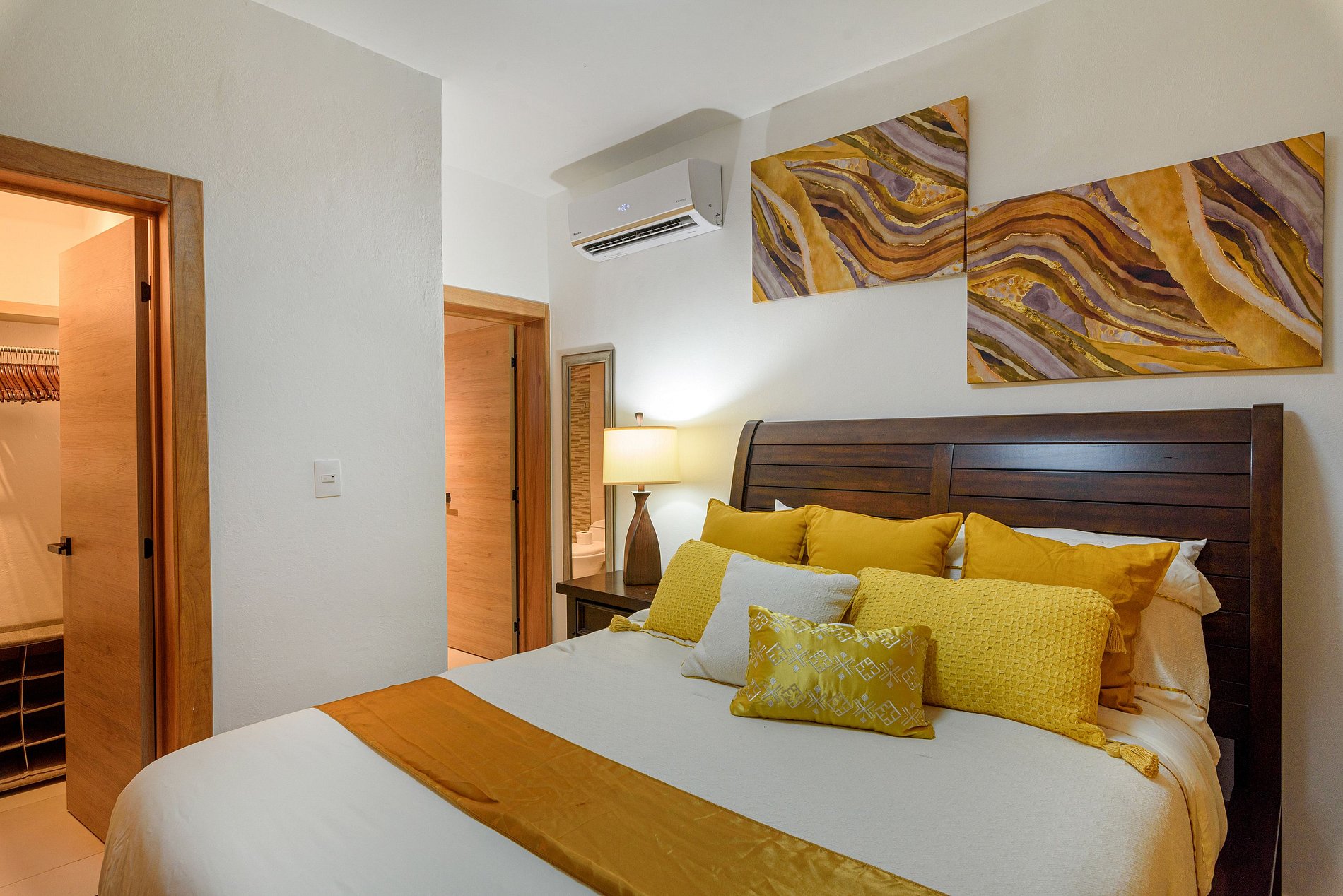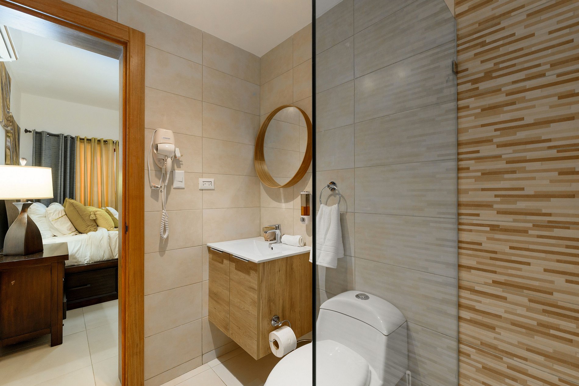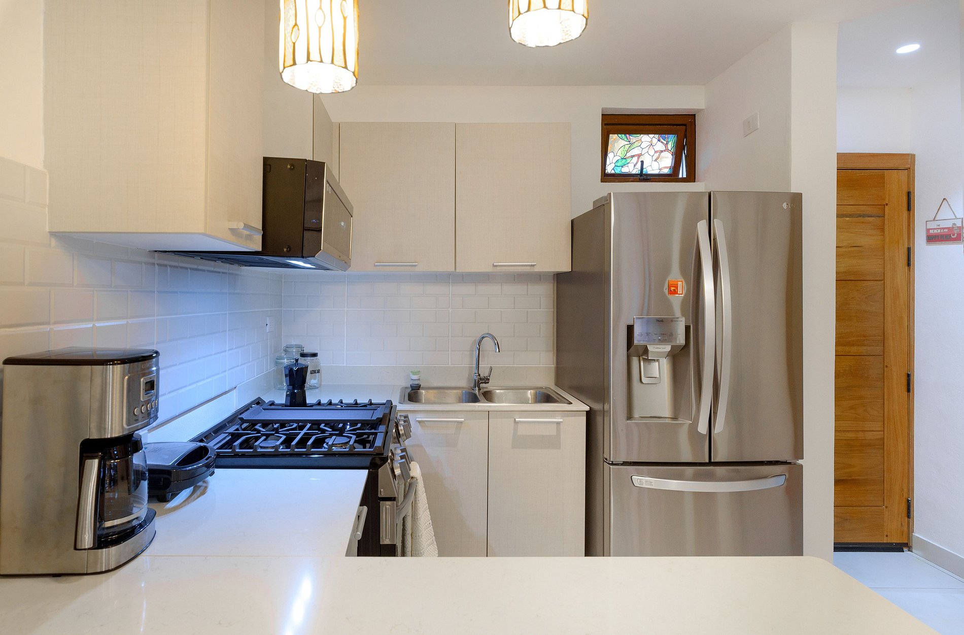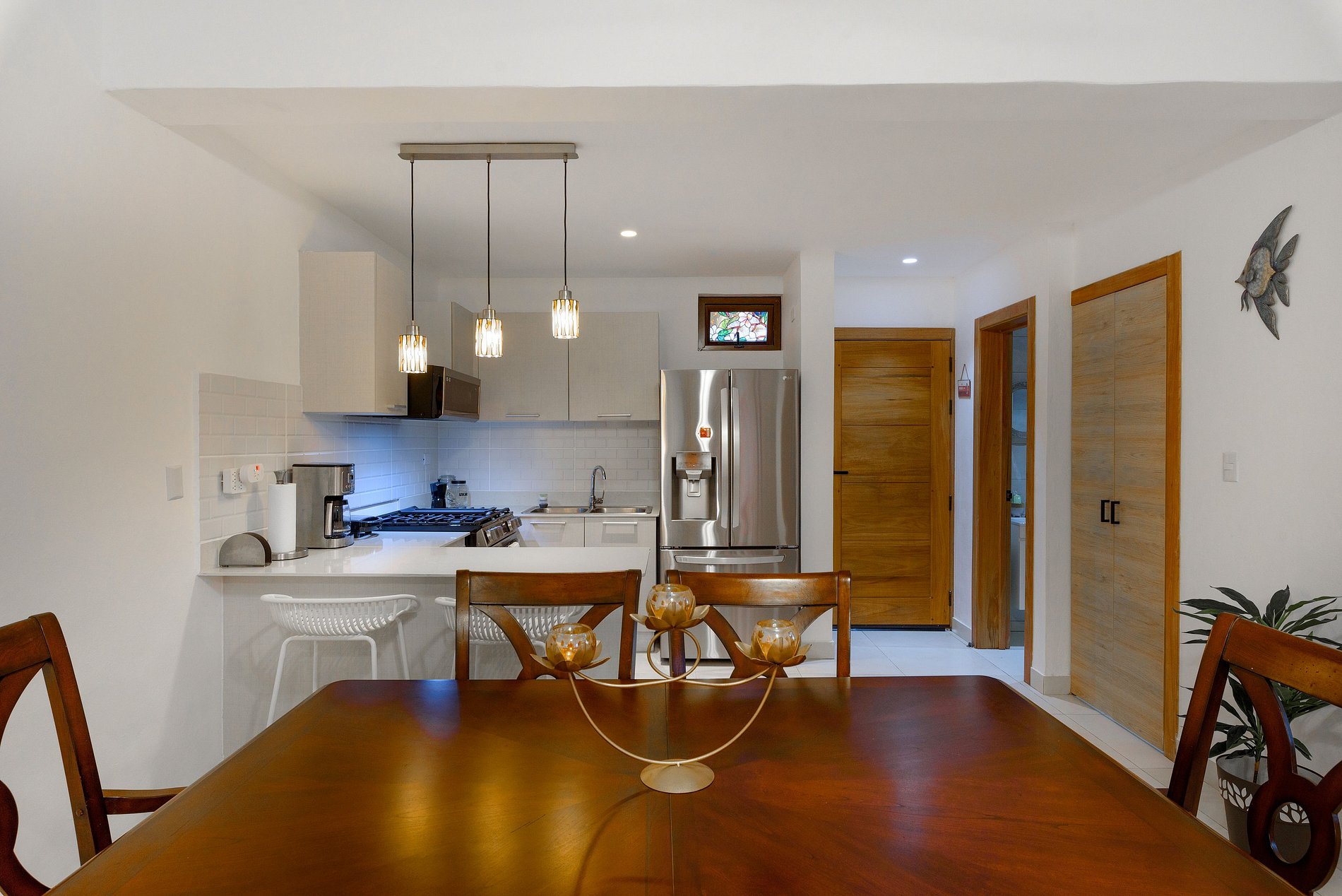 En la sala, encontrarás un comedor, un cómodo sofá, una televisión smart para tu entretenimiento y un medio baño adicional. La cocina está completamente equipada con todo lo necesario para preparar tus comidas favoritas. Este apartamento está diseñado para hacer de tu estancia una experiencia placentera.