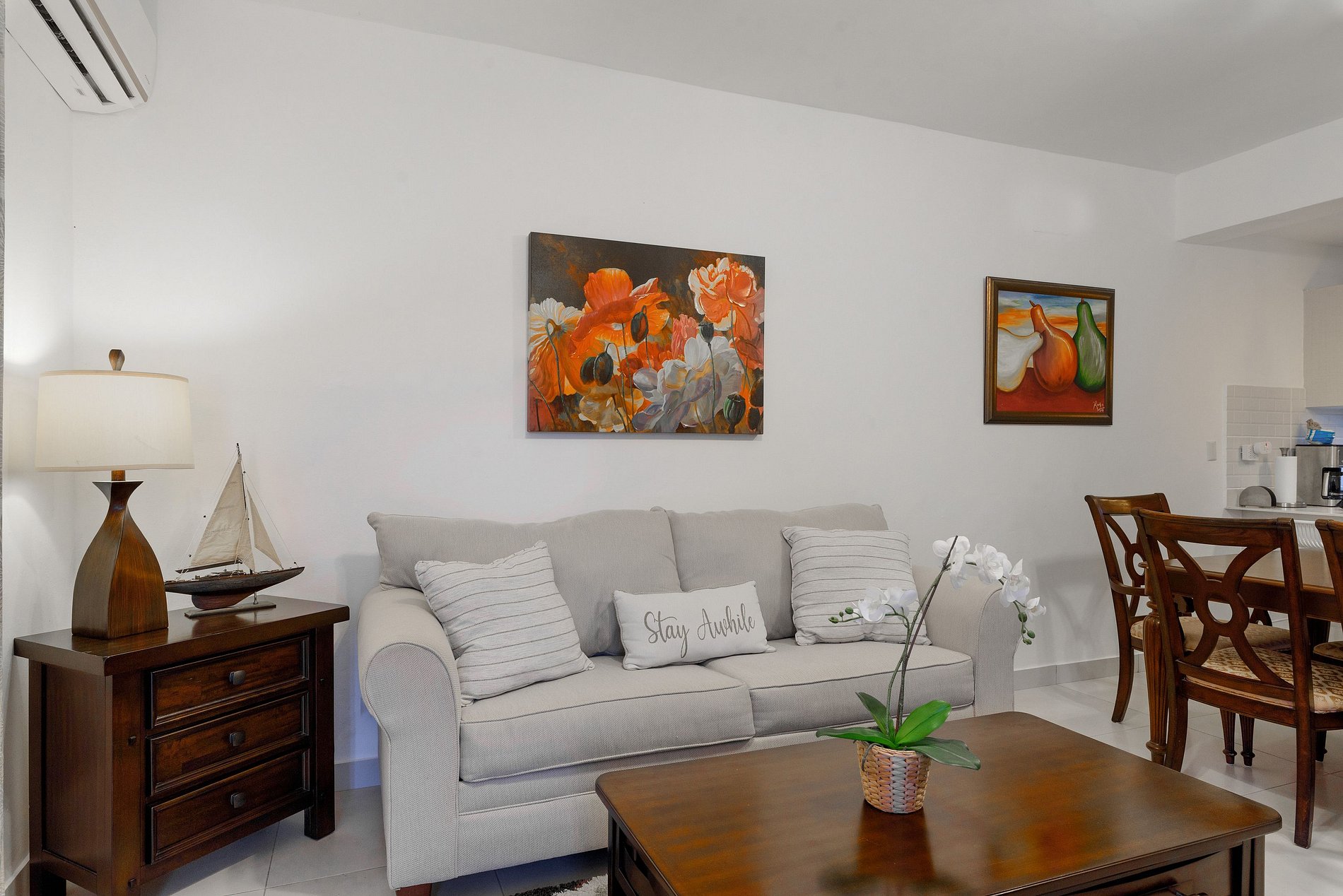 Bienvenido a nuestro acogedor apartamento en un residencial de lujo con seguridad las 24 horas. Ubicado en el primer piso, disfrutarás de fácil acceso y comodidad. Relájate en la piscina, mantente activo en el gimnasio y deja que los niños se diviertan en el área de juegos. La playa, a solo 7 minutos en coche te espera con sus aguas cristalinas y arenas blancas. El aeropuerto a solo 15 minutos y a 10 minutos del Downtown Punta Cana. Este es el lugar perfecto para unas vacaciones inolvidables.