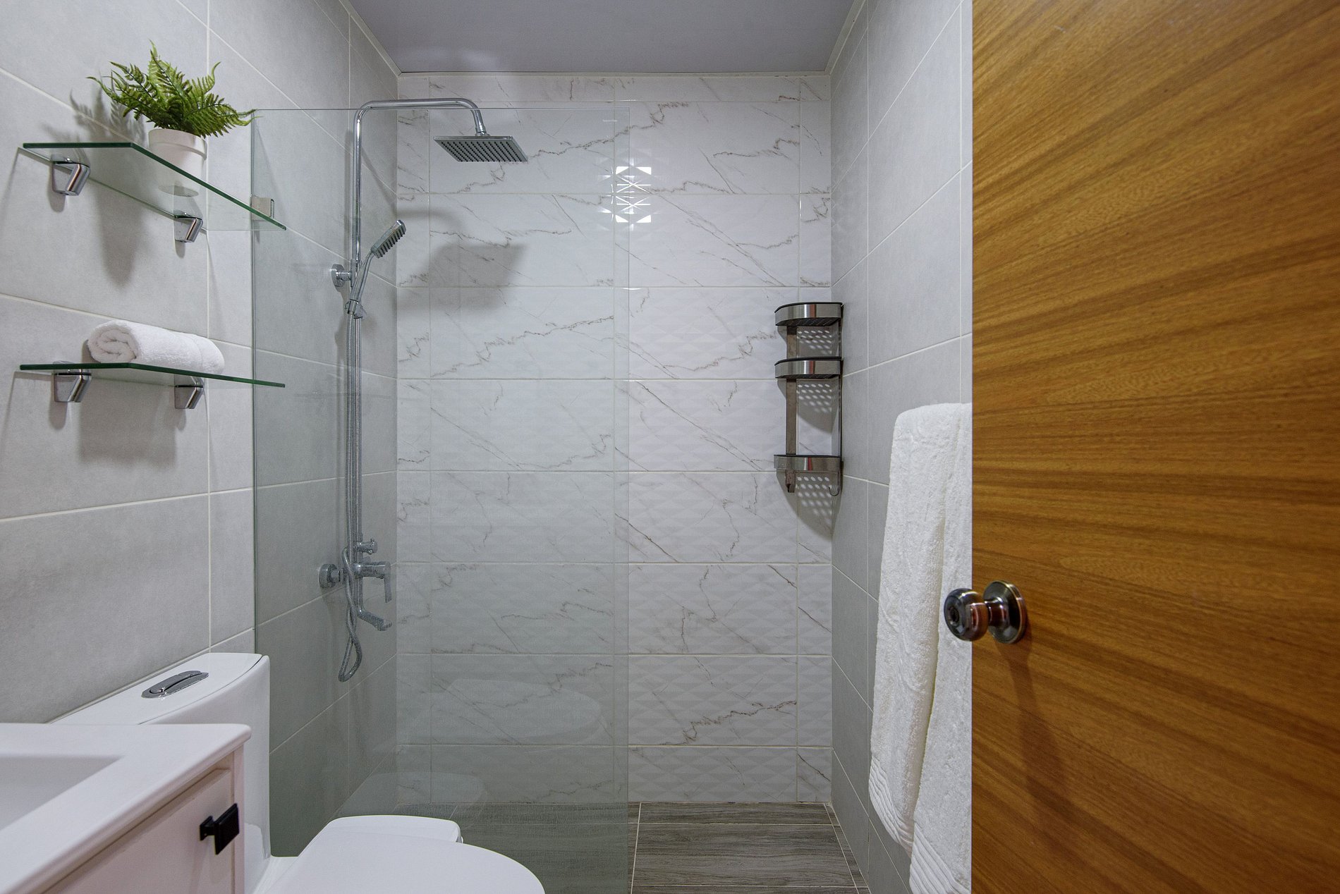 Al entrar en este lujoso apartamento, serás recibido por un elegante comedor que invita a compartir momentos especiales. La sala, equipada con un Smart TV y canales de cable, es el lugar perfecto para relajarte en los cómodos sofás tras un día de exploración. Esta sala también cuenta con un medio baño para mayor comodidad. La cocina moderna y completamente equipada hará que preparar tus comidas favoritas sea una experiencia placentera.