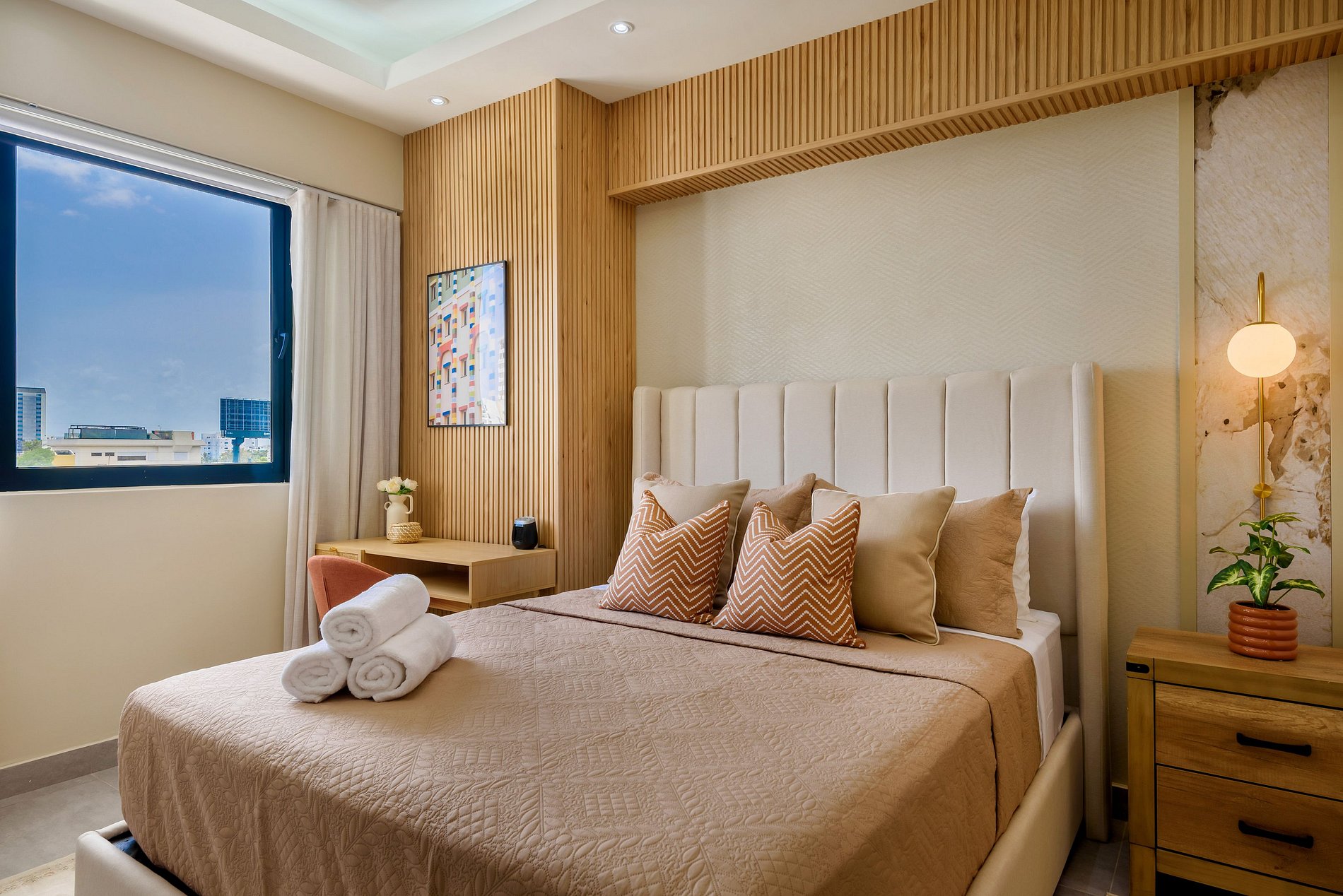 Disfruta de una estancia de lujo en nuestro moderno apartamento de dos habitaciones en el corazón de Santo Domingo. Situado en un edificio exclusivo, ofrece comodidades excepcionales como gimnasio, área de juegos para niños y una piscina en el piso 15 con impresionantes vistas a la ciudad. Con una decoración elegante y todas las comodidades que necesitas, a solo pasos de bares, restaurantes, cines y centros comerciales, es el lugar perfecto para unas vacaciones inolvidables o viaje de negocios.