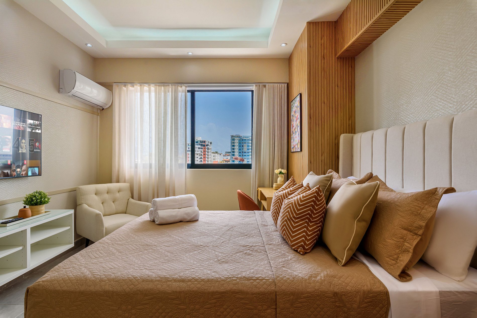 Desde el balcón disfrutarás de una hermosa vista de la ciudad, convirtiéndolo en el lugar ideal para disfrutar de una taza de café por la mañana o una copa de tu bebida favorita al atardecer.