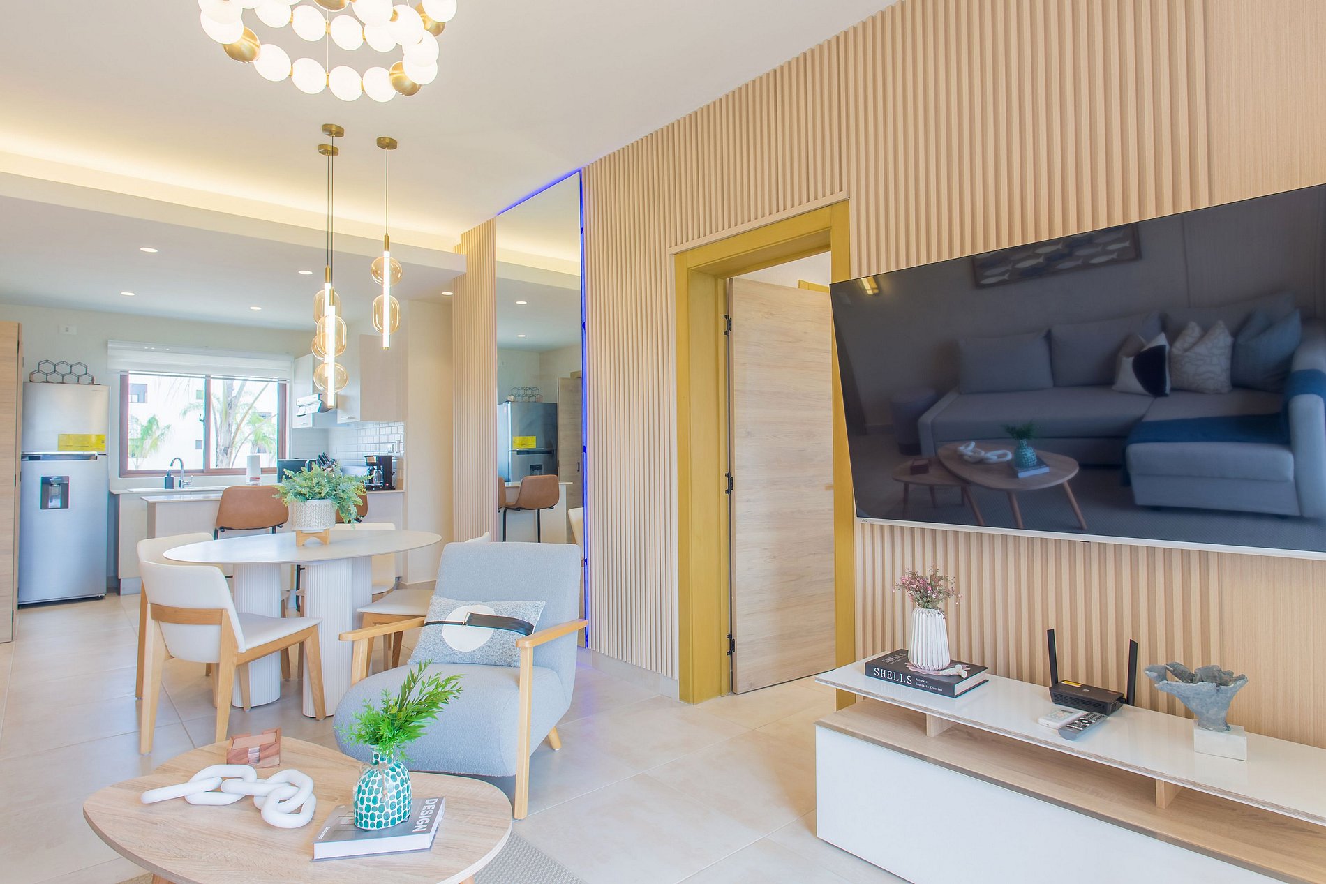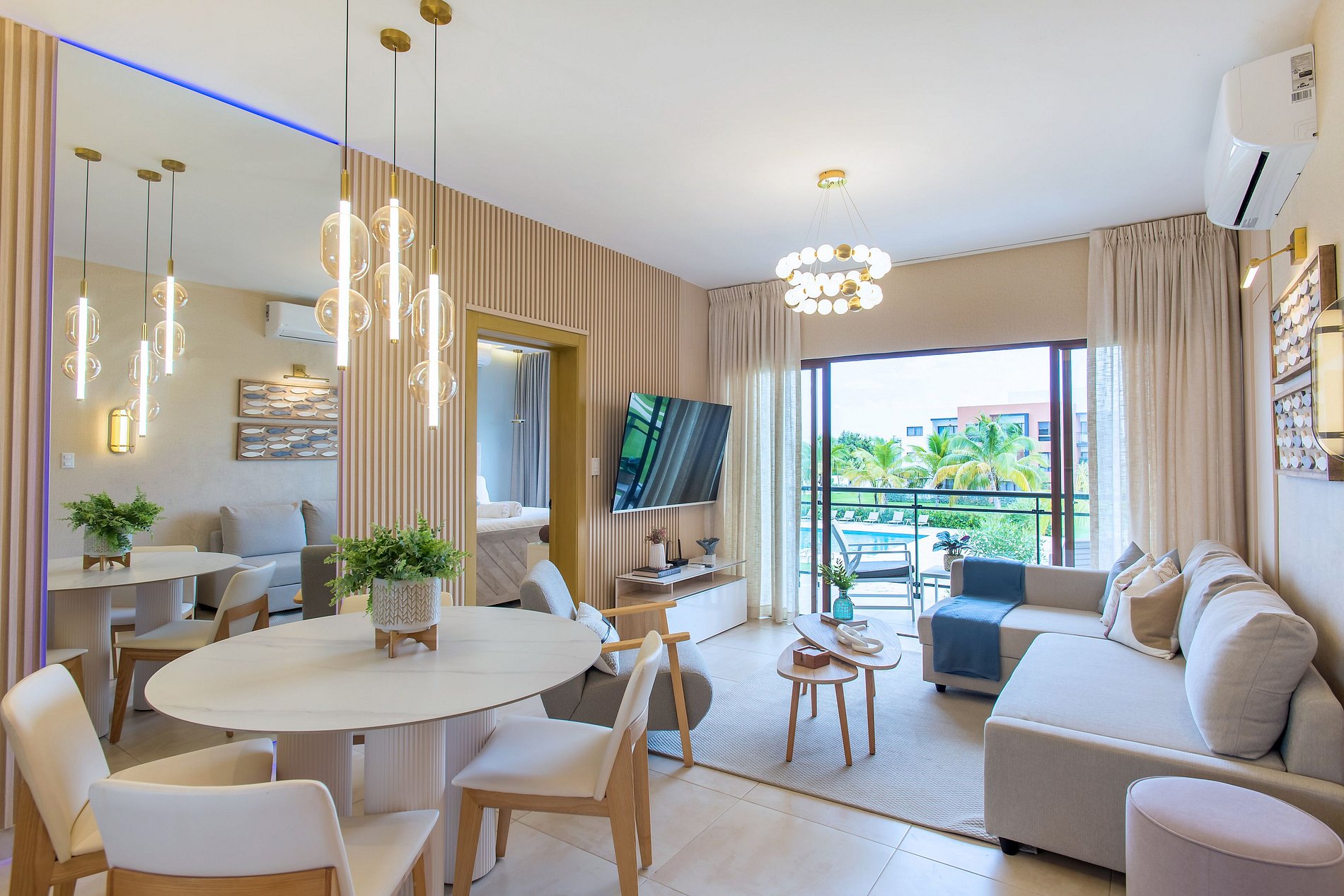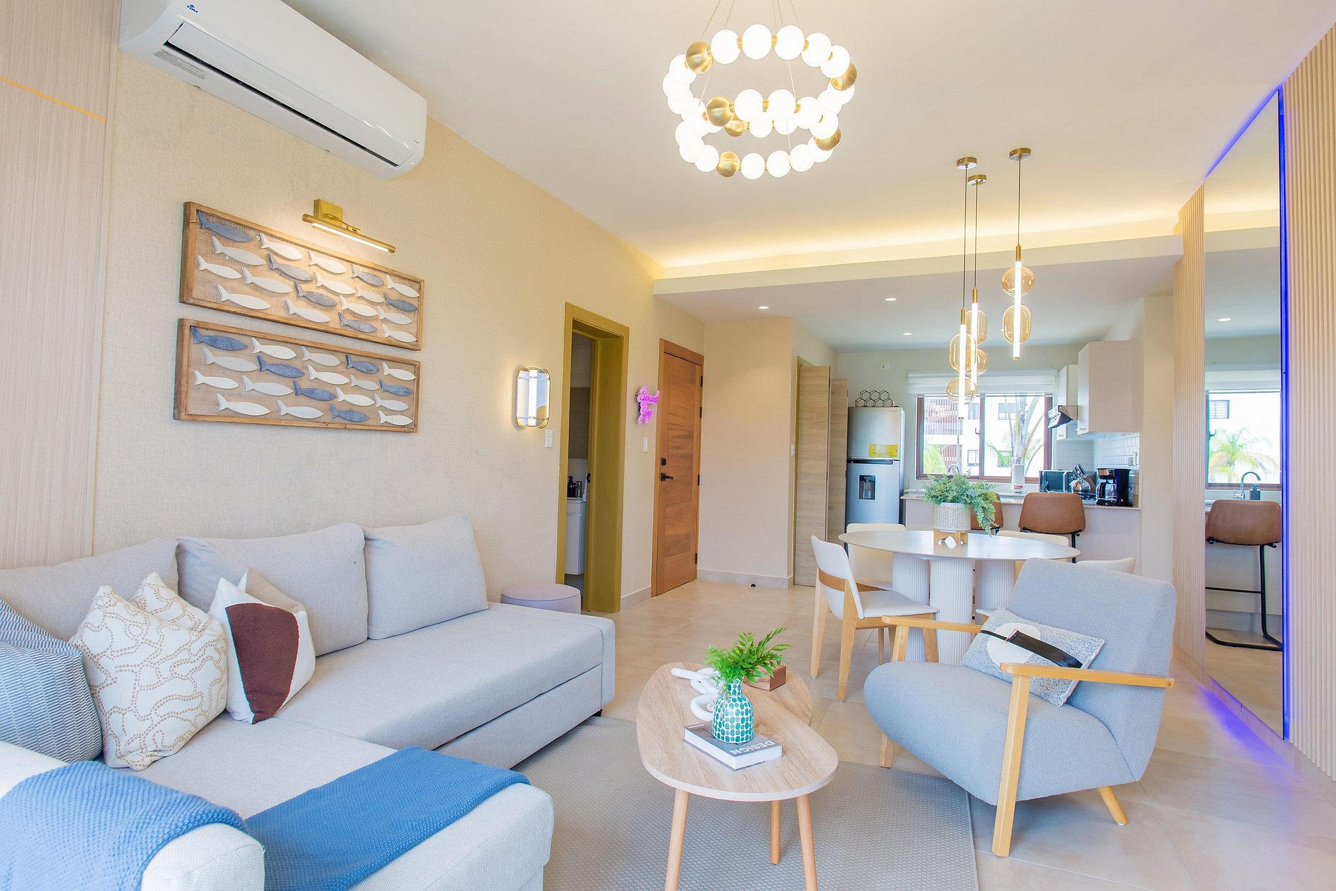 Descubre este elegante apartamento de lujo en Punta Cana con vista a la piscina, ideal para relajarte y disfrutar. Cuenta con dos amplias habitaciones y está ubicado en un residencial con seguridad 24/7, gimnasio, coworking, área de juegos para niños y una piscina semiolímpica. A solo 7 minutos manejando de la playa y 15 minutos del aeropuerto, combina confort, estilo y ubicación perfecta. Vive una experiencia inolvidable rodeado de tranquilidad y amenidades excepcionales.