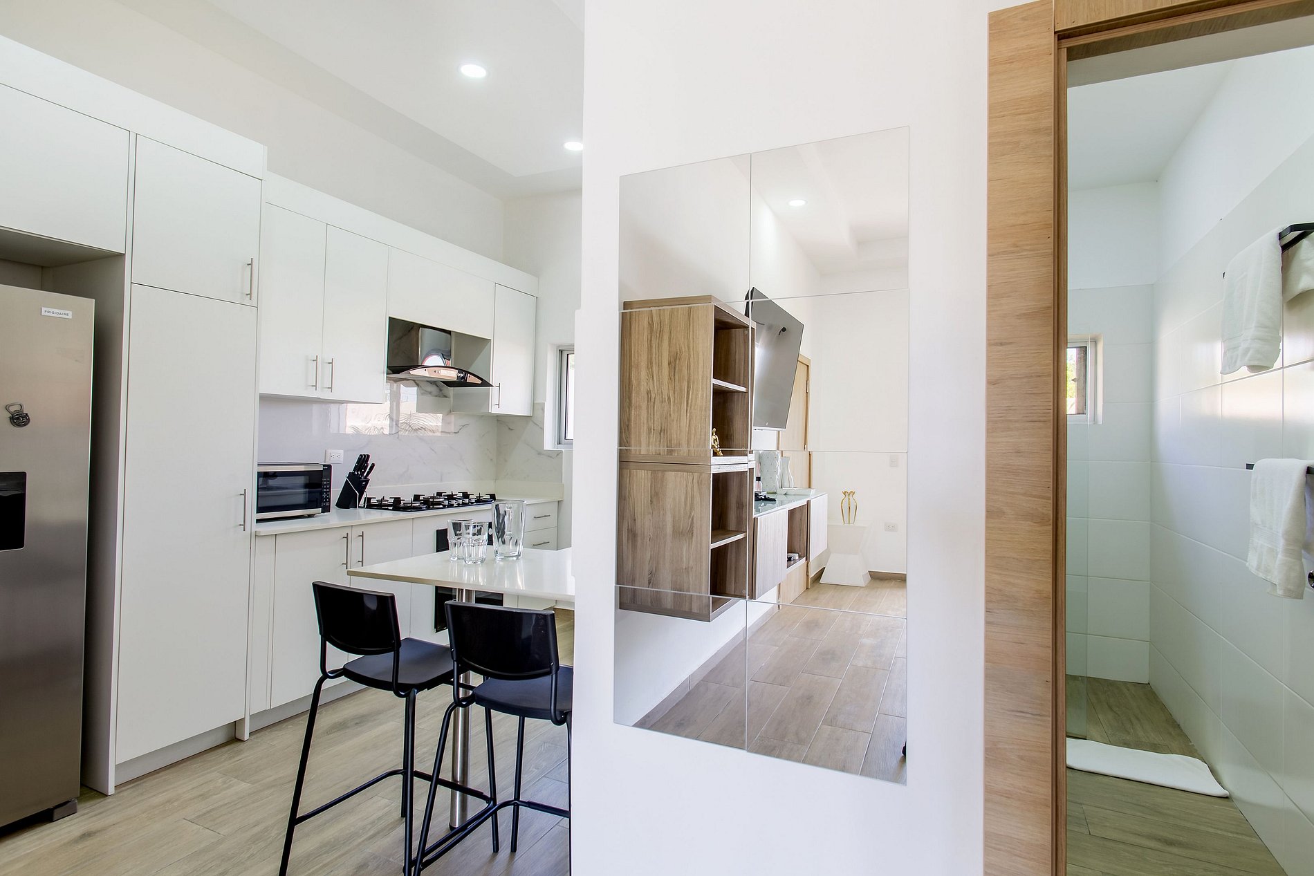 A solo 5 minutos del vibrante Downtown Punta Cana, donde encontrarás restaurantes modernos, bares animados, supermercados, centros comerciales, el impresionante Coco Bongo y divertidos parques acuáticos. Además, estás a solo 10 minutos de la playa y del Aeropuerto Internacional de Punta Cana.