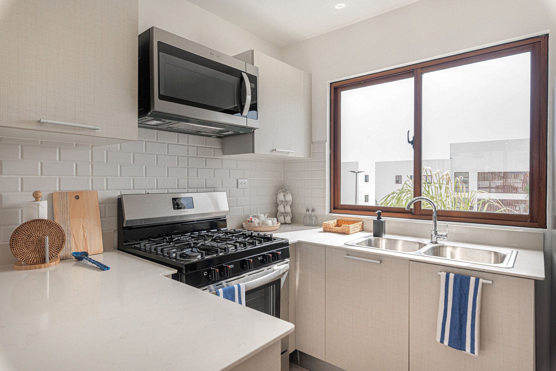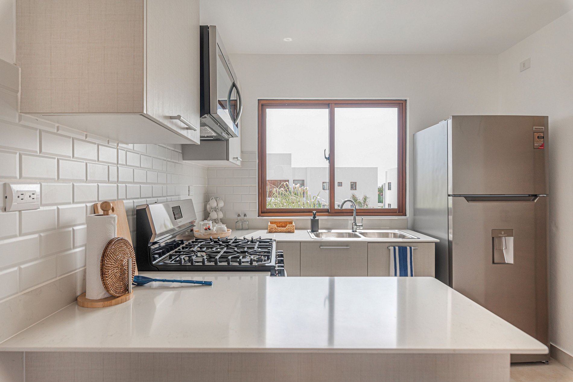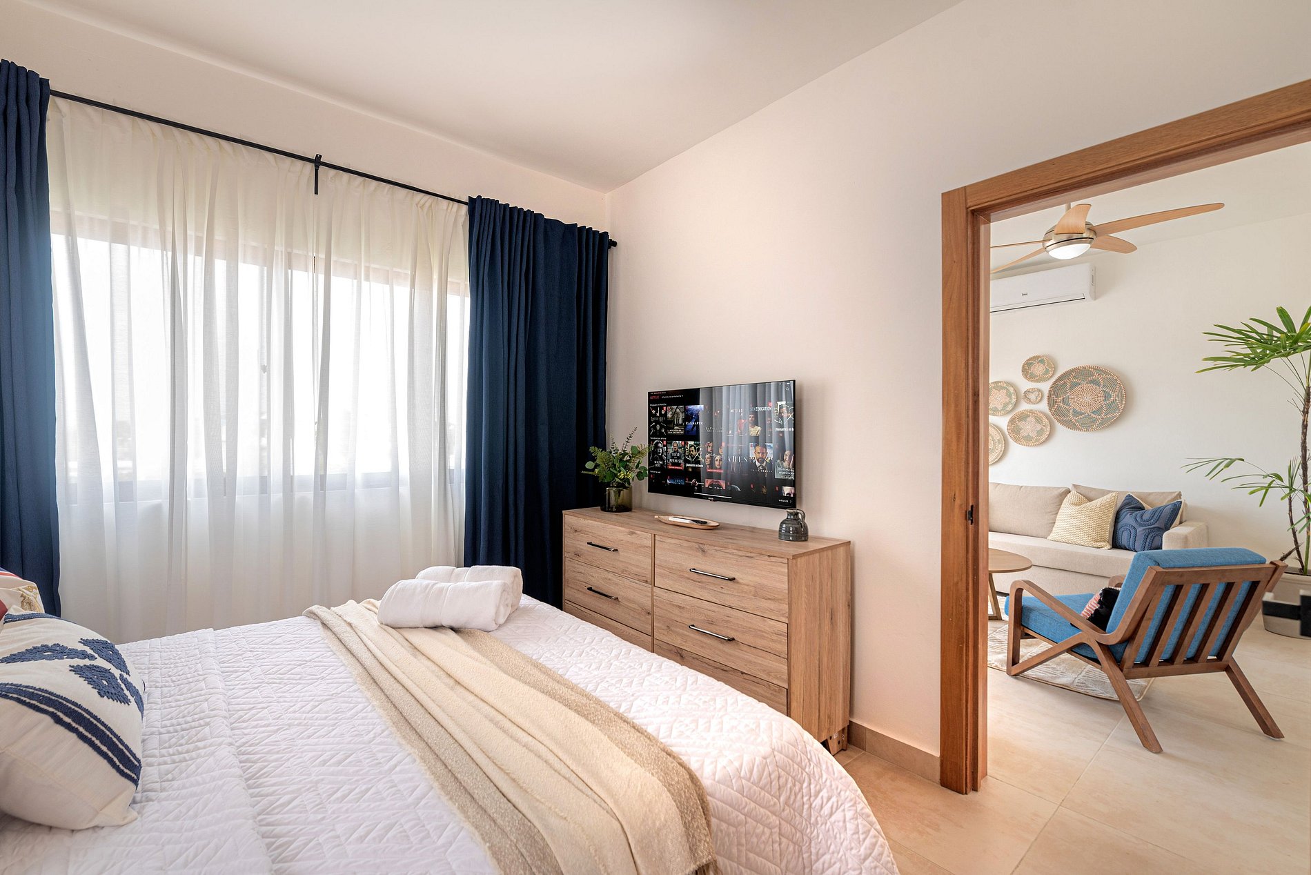Este acogedor apartamento de una habitación en el Residencial Costa Bávaro Garden te recibe con una luminosa sala de estar equipada con sofá cama, Smart TV y un práctico medio baño para mayor comodidad; la habitación principal cuenta con una cama Queen, su propio baño privado, otra Smart TV y un elegante walking closet para máxima organización. La cocina completamente equipada y el comedor invitan a disfrutar cada comida con confort, mientras que el residencial complementa la experiencia con piscina, gimnasio, área infantil, coworking y acceso privado a la playa, todo a pocos minutos de las aguas turquesas de Punta Cana.