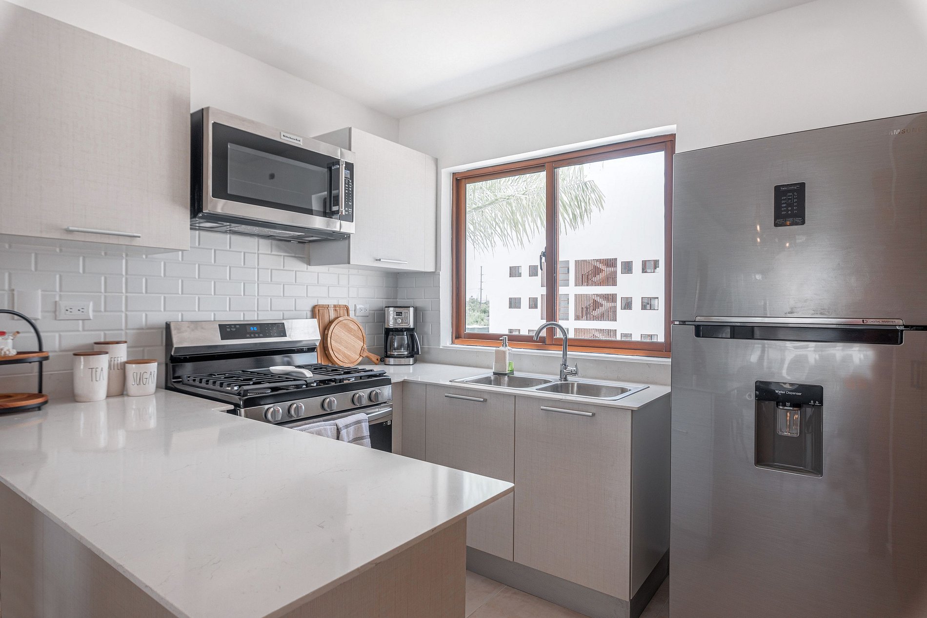 Escápate en el paraíso Punta Cana y déjate seducir por el lujo de nuestro apartamento de dos habitaciones. Disfruta de un exclusivo acceso a una playa paradisíaca a solo 7 minutos de distancia. Relájate en nuestra impresionante piscina, mantente en forma en el moderno gimnasio y siéntete inspirado en el área de coworking. Los niños se divertirán en su área de juegos. ¡Haz tu reserva ahora y asegura momentos inolvidables en este lugar excepcional! A 15 minutos del aeropuerto de Punta Cana.