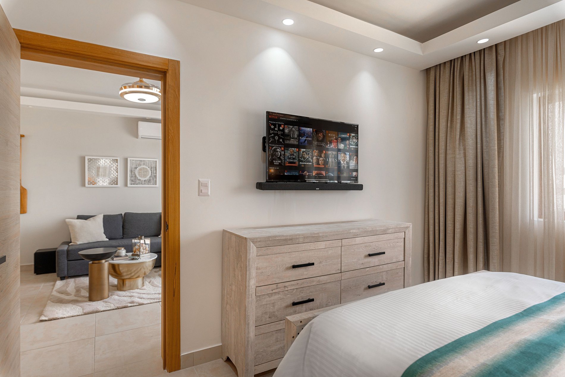 La habitación principal es un refugio refinado, con una Smart TV, baño privado y un elegante vestidor. La segunda habitación es igualmente encantadora, con su propia Smart TV y su baño privado.
