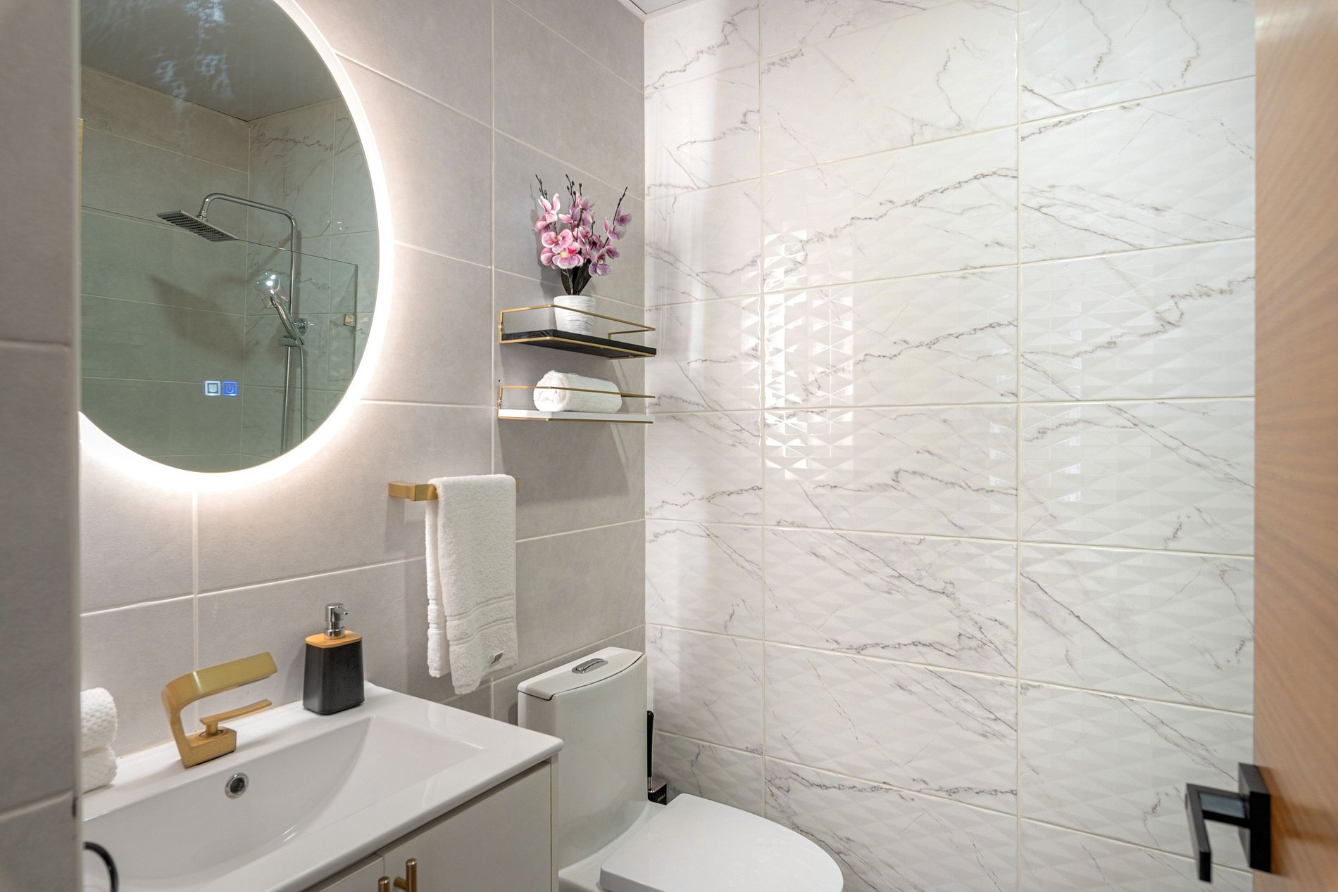 Cada habitación tiene su baño privado y en la sala un medio baño, lo que garantiza la comodidad y privacidad para todos los huéspedes. La decoración lujosa crea un ambiente acogedor y elegante, permitiéndote sentirte como en casa desde el primer momento.