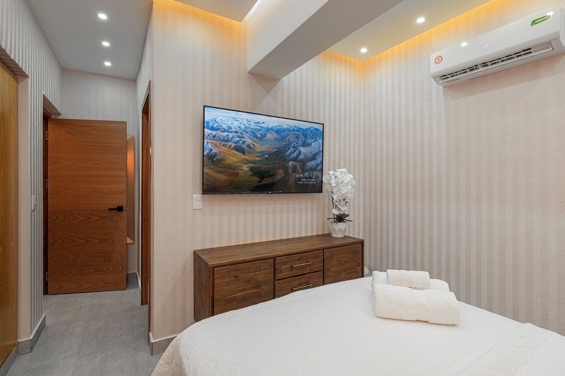 Al explorar las habitaciones, descubres un rincón de lujo y privacidad. Cada habitación está equipada con su propia televisión Smart TV, para que puedas disfrutar de tus programas favoritos antes de retirarte a descansar. Cada habitación también cuenta con su propio baño privado, lo que brinda comodidad y privacidad a todos los huéspedes.