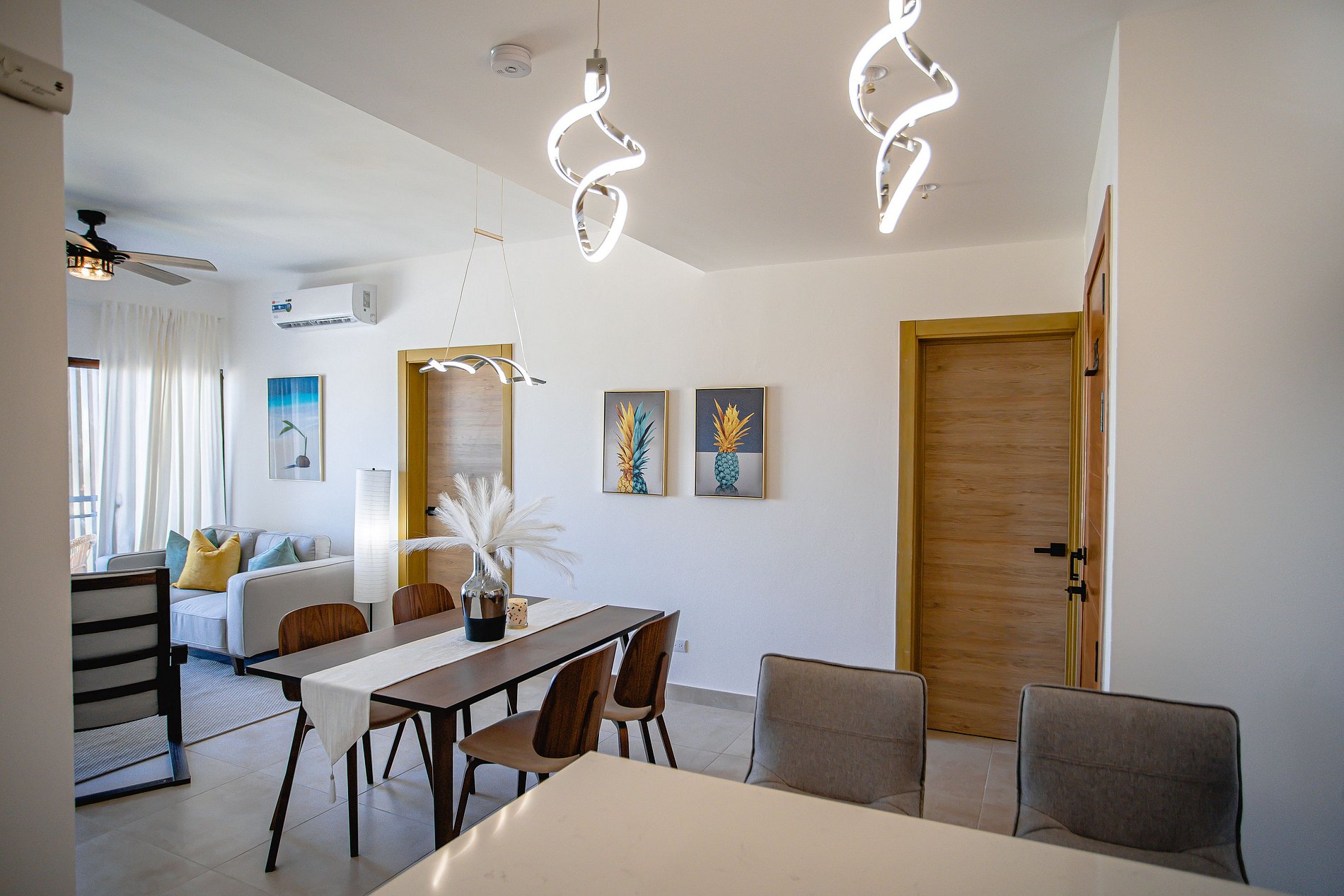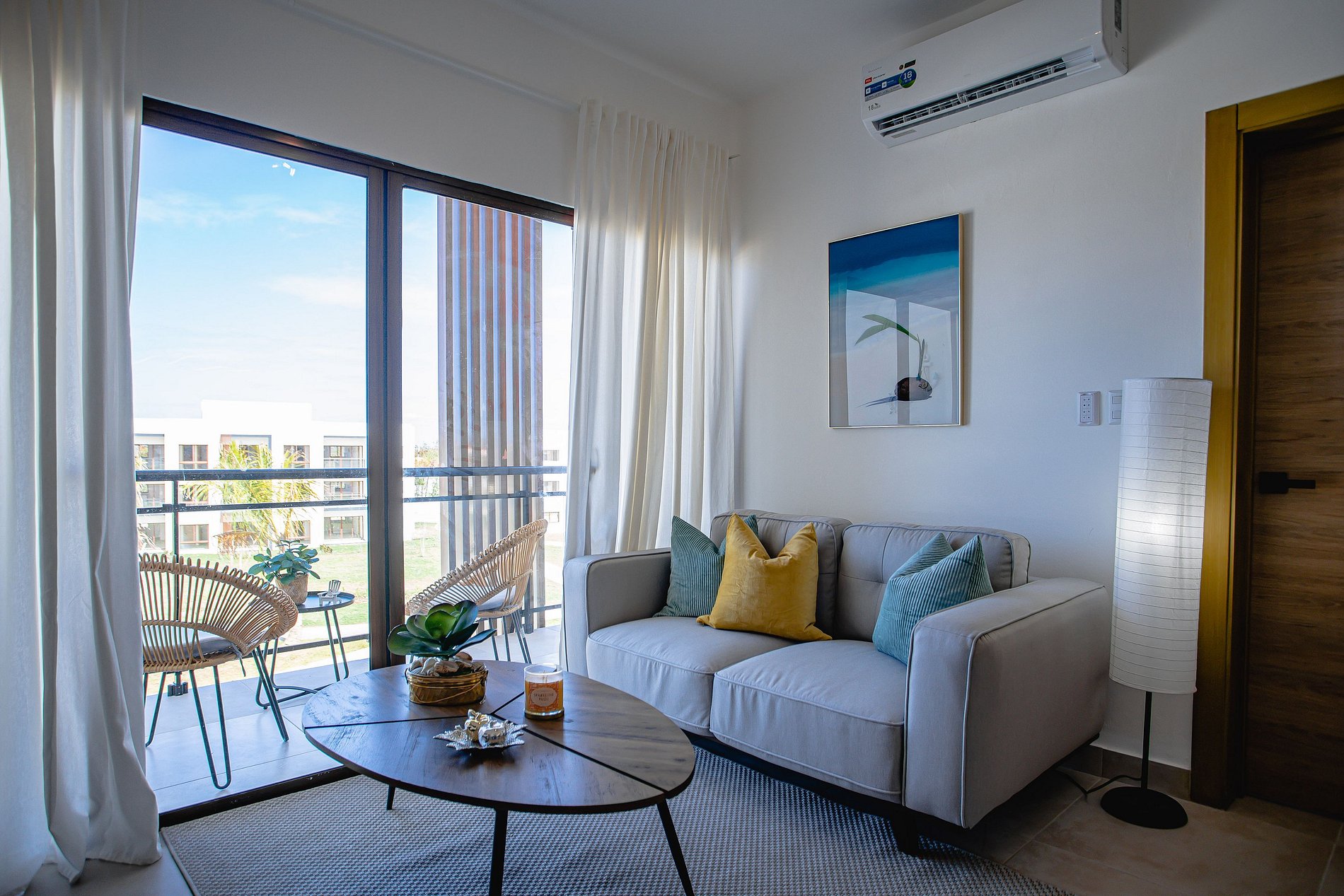 Este apartamento de 2 habitaciones es tu puerta de entrada a un mundo de maravillas caribeñas. A solo 15 minutos del aeropuerto internacional de Punta Cana. Además, en tan solo 10 minutos el Downtown Punta Cana te invita a explorar su vibrante escena culinaria en todos sus restaurantes, supermercados repletos de delicias locales, cines, centros comerciales y tiendas fascinantes. No puedes perderte la impresionante experiencia de Coco Bongo, a 10 minutos desde tu hogar temporal.