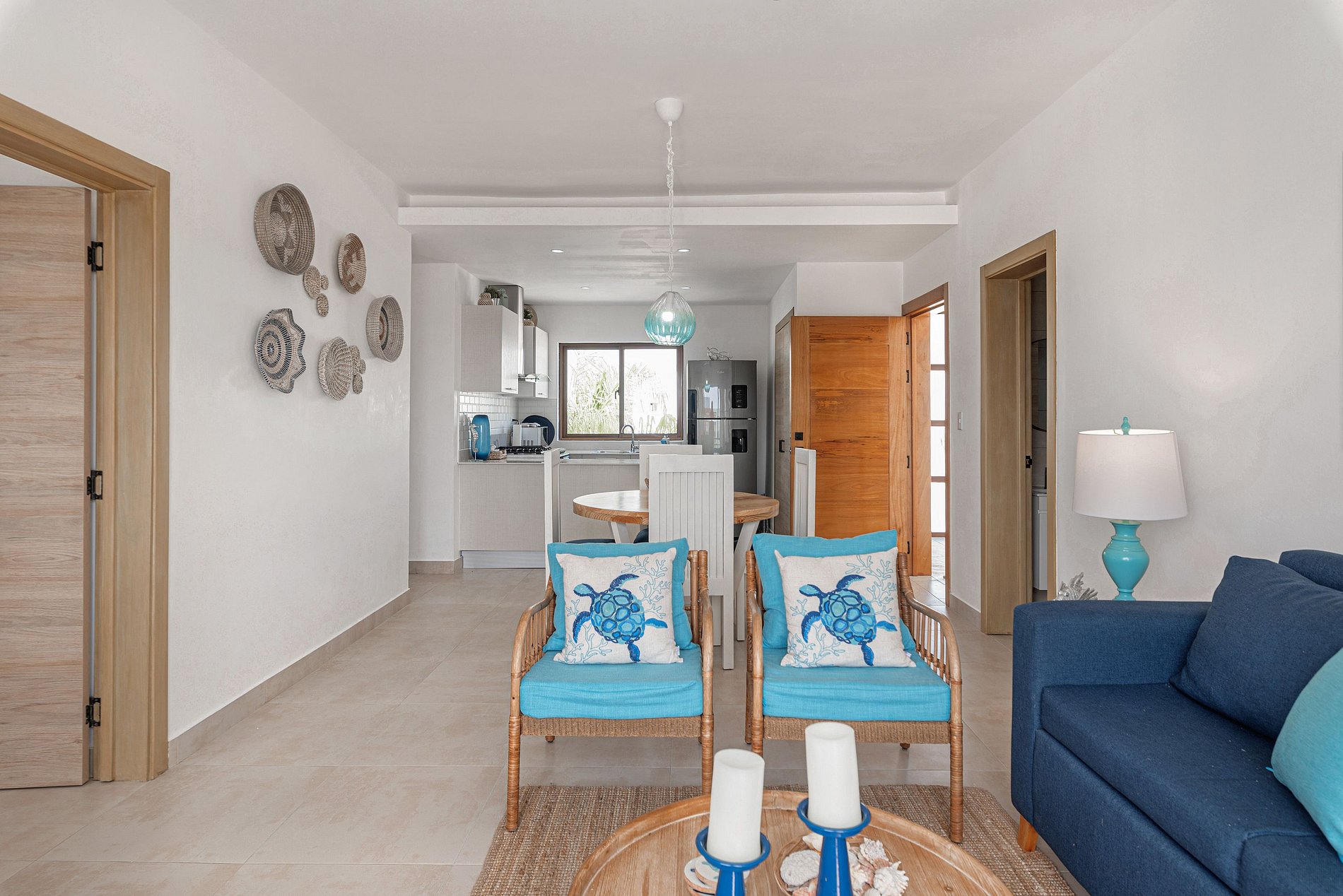 La habitación principal ofrece una cama King Size para sueños rejuvenecedores y un amplio walking closet, mientras que la habitación secundaria cuenta con una cómoda cama Queen. La sala te invita a relajarte en un sofá y disfrutar de entretenimiento en la Smart TV. El comedor de 4 sillas es perfecto para compartir momentos especiales.